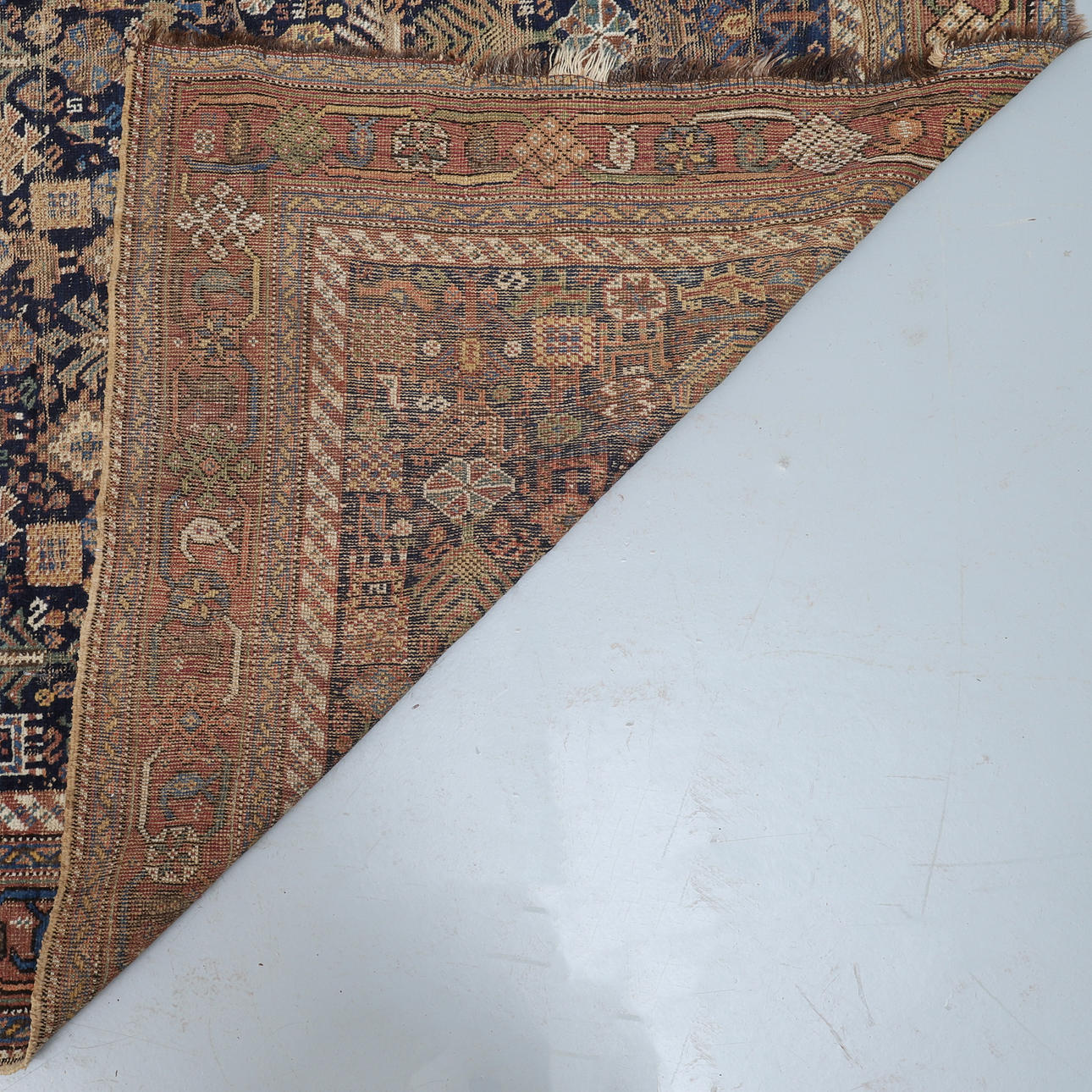 with repeated foliate designs on a blue ground, 180cm x 138cm.