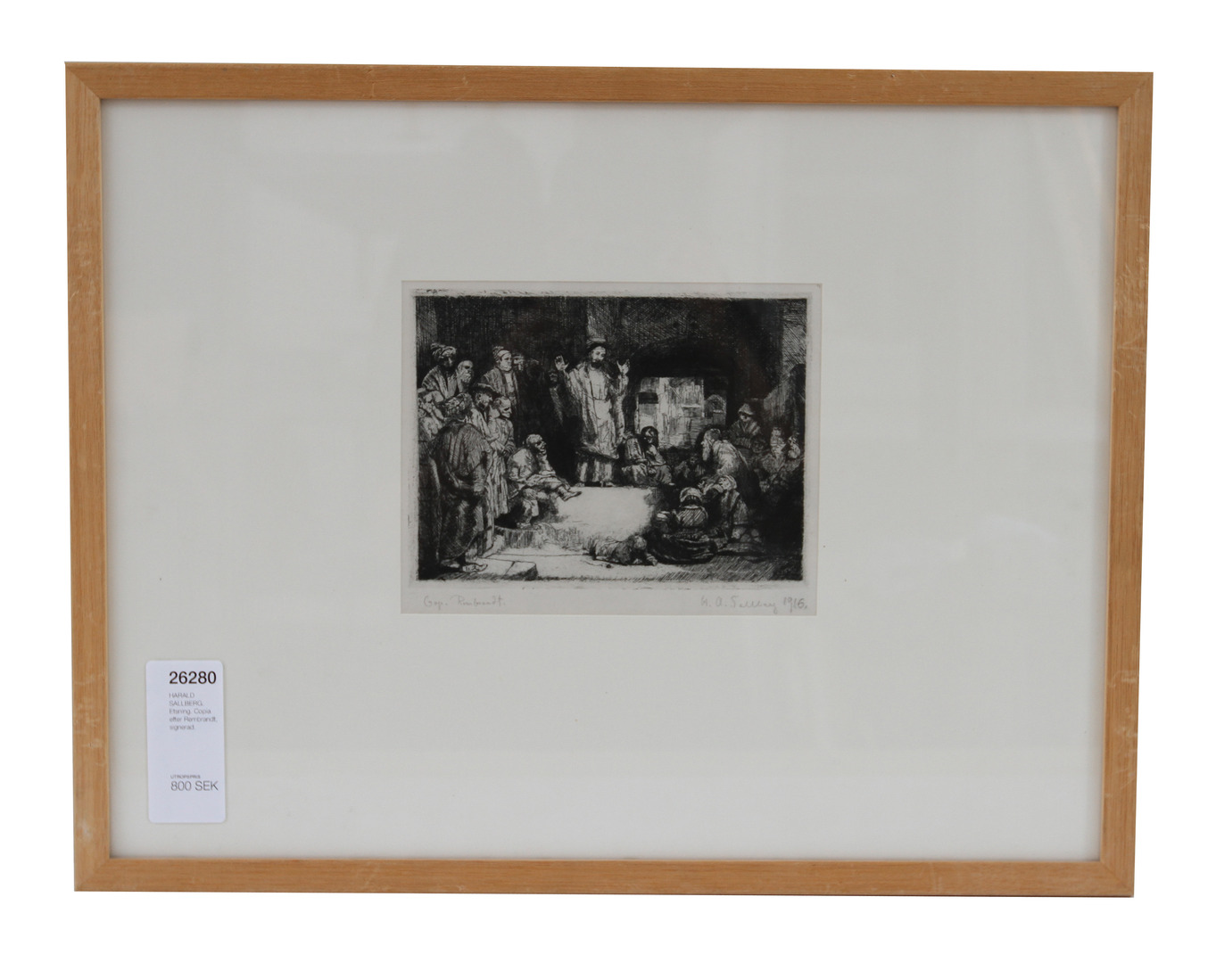 26280. HARALD SALLBERG. Etching. Copy after Rembrandt, signed.