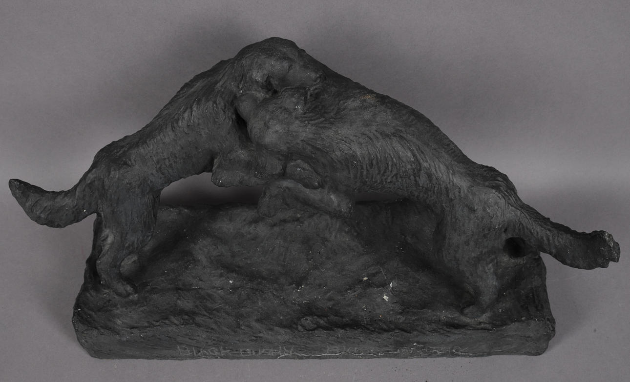 Crack in both dogs' waist, one dog's tail & in base, wear, damage, dirt.