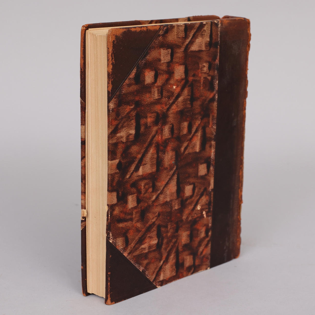 Band with extensive wear and damage, spine with a through crack in rear fold. insert minor yellowing and stains.