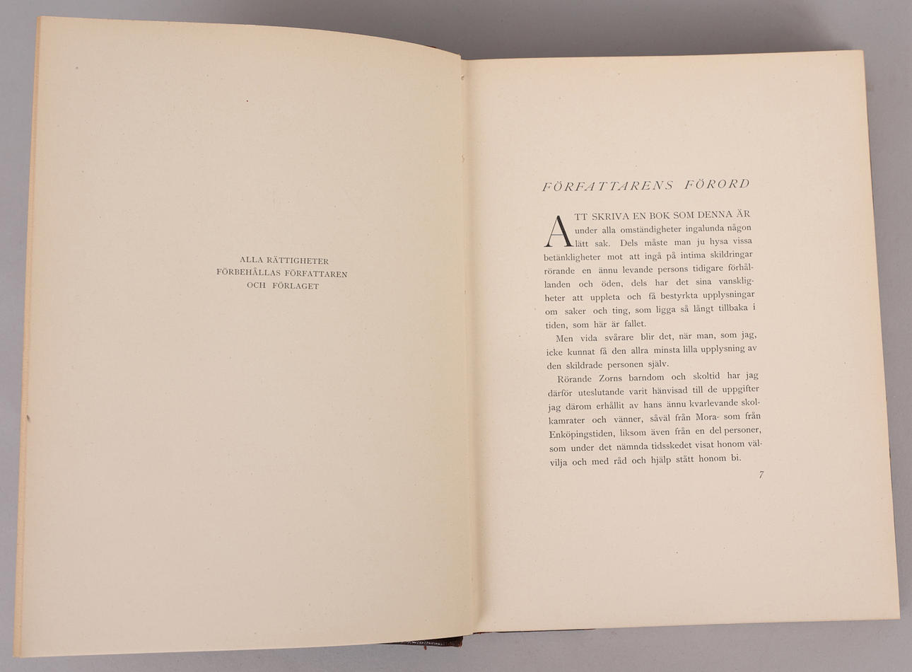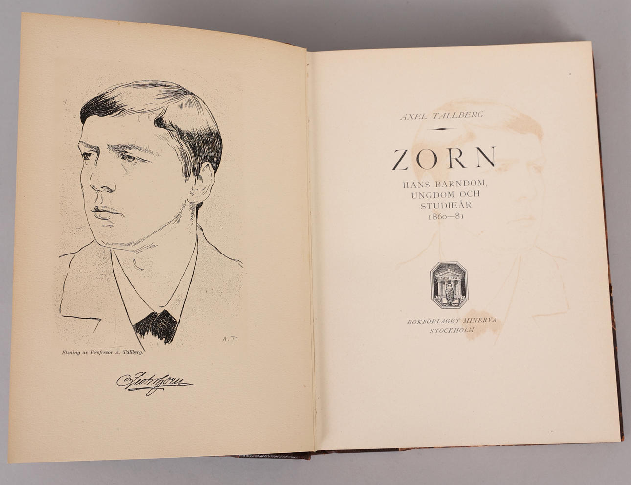 Axel Tallberg, Zorn, his childhood, youth and years of study, Bokförlaget Minerva, Stockholm, 1919 Biography of Anders Zorn's youth, written by the graphic artist Axel Tallberg. With original lithograph depicting Zorn executed by the author.