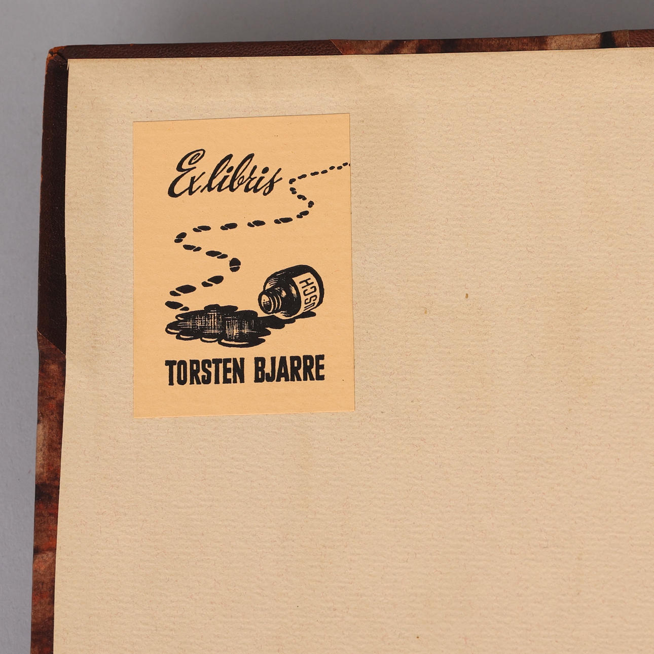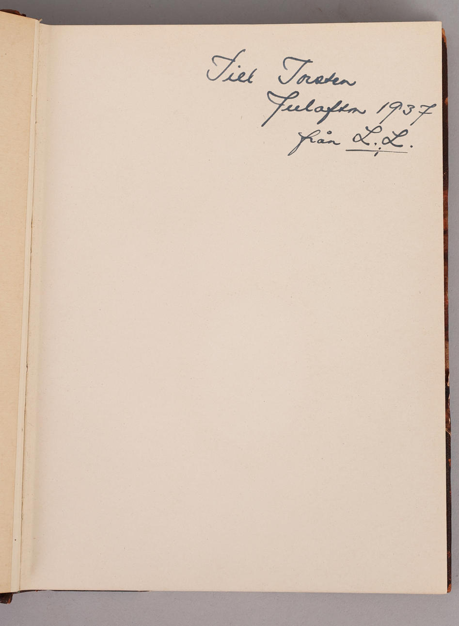 Ex libris from the cartoonist Torsten Bjarre, as well as with dedication from the foreword author Ludvig Looström to him.