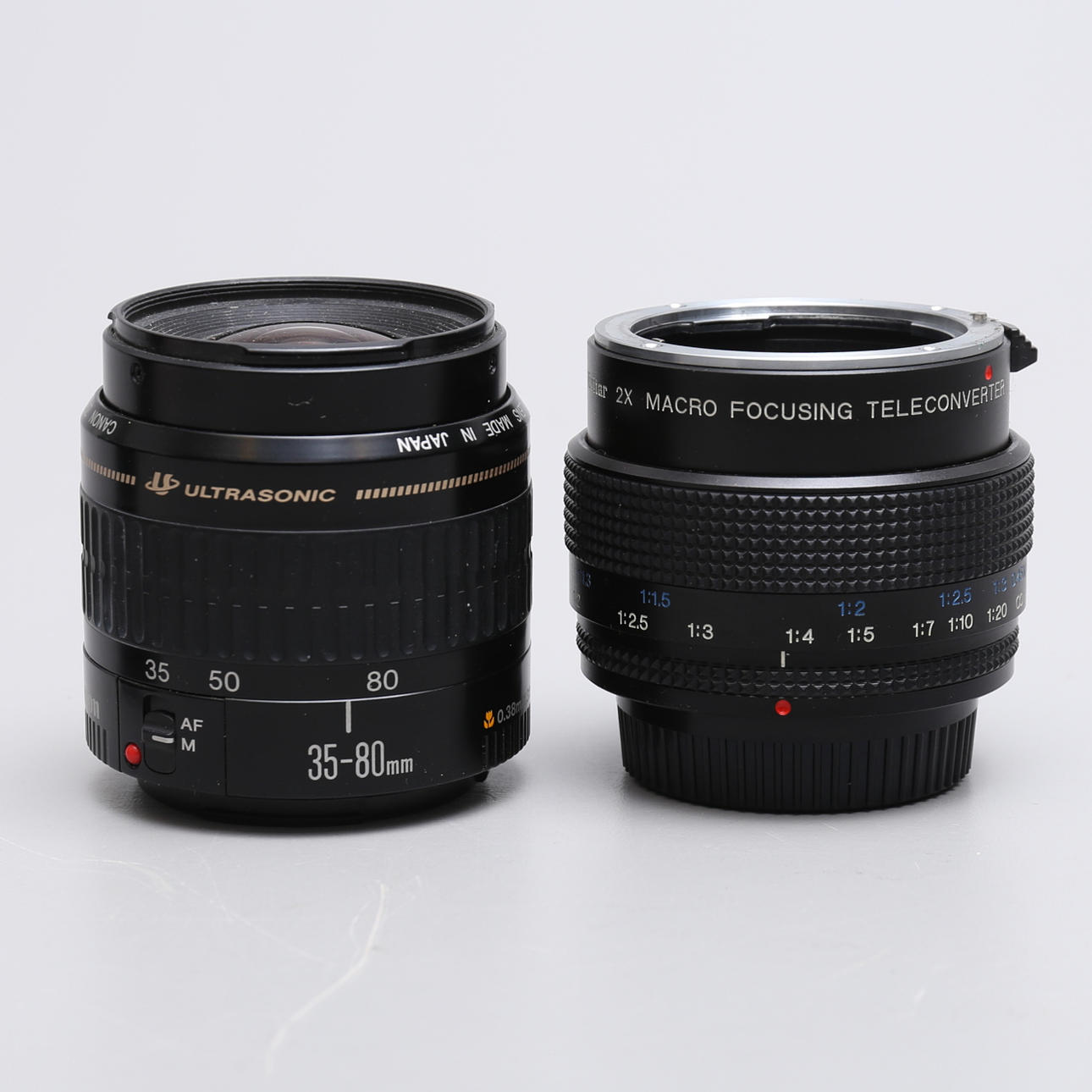 With lens Canon Zoom Lens EF 35-80 mm, 1:4-5.6. Vivitar 2x macro focusing teleconverter. Manual included.