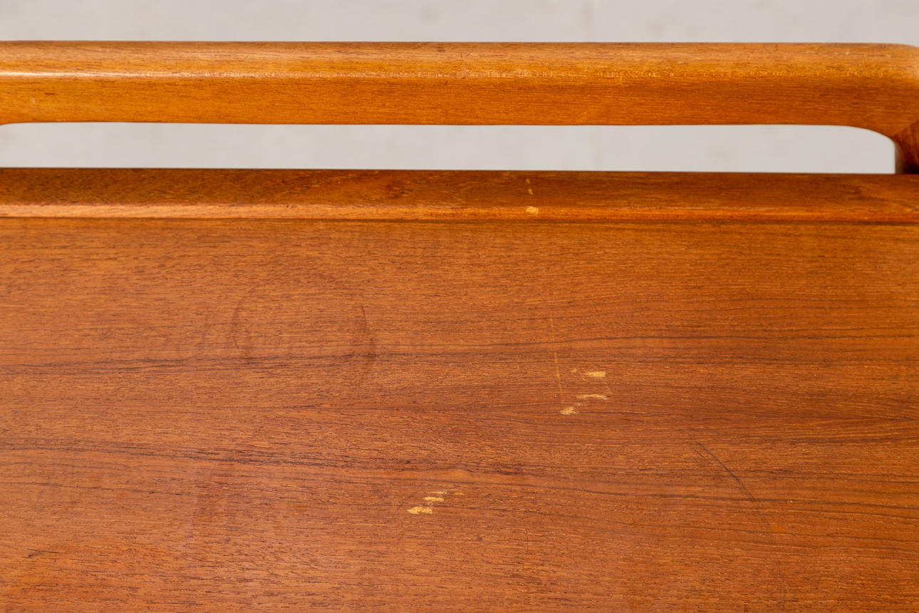Small Mid Century Teak Trolley / Serving Trolley by Sika Møbler. Denmark, 1960s. With shelf and a removable and reversible tray.