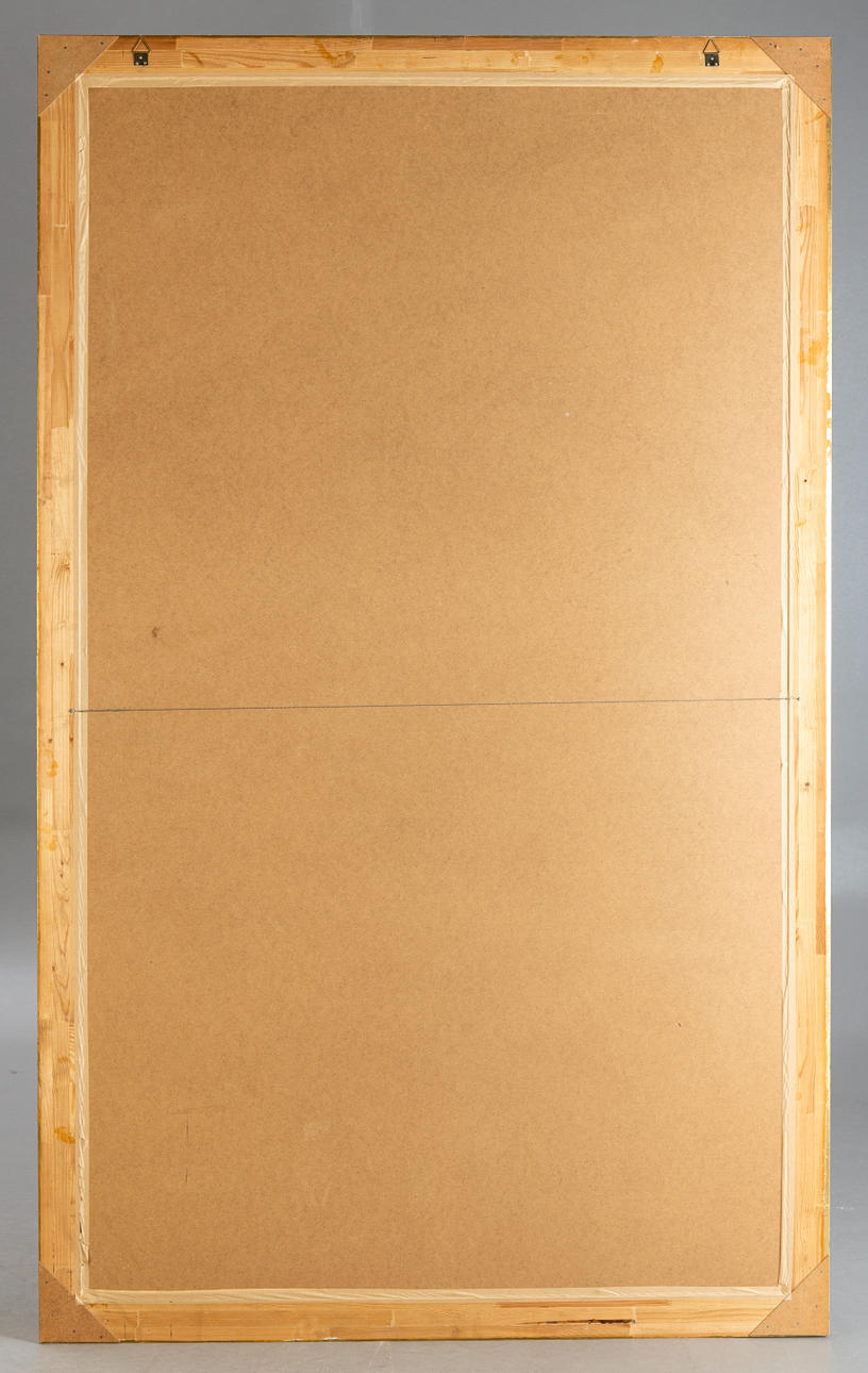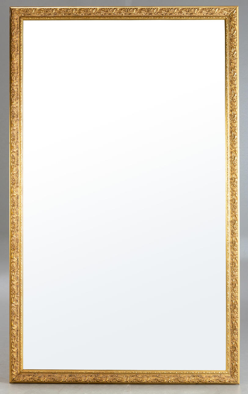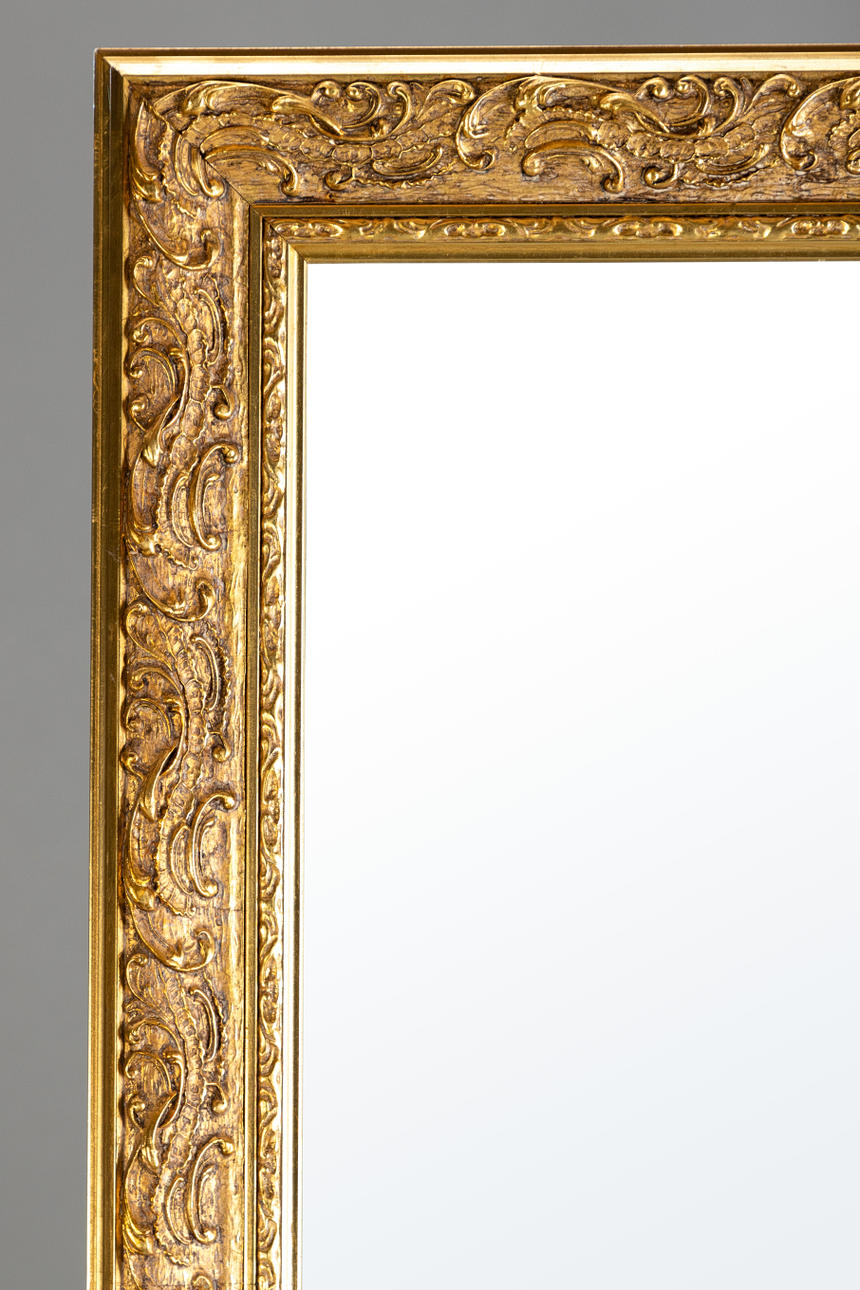Wooden frame with stucco ornamentation, metal leaf. High, rectangular, narrow bar with all-round reliefed rocaille and volute decoration. HxWxD: approx. 231 x 141 x 4.5 cm.