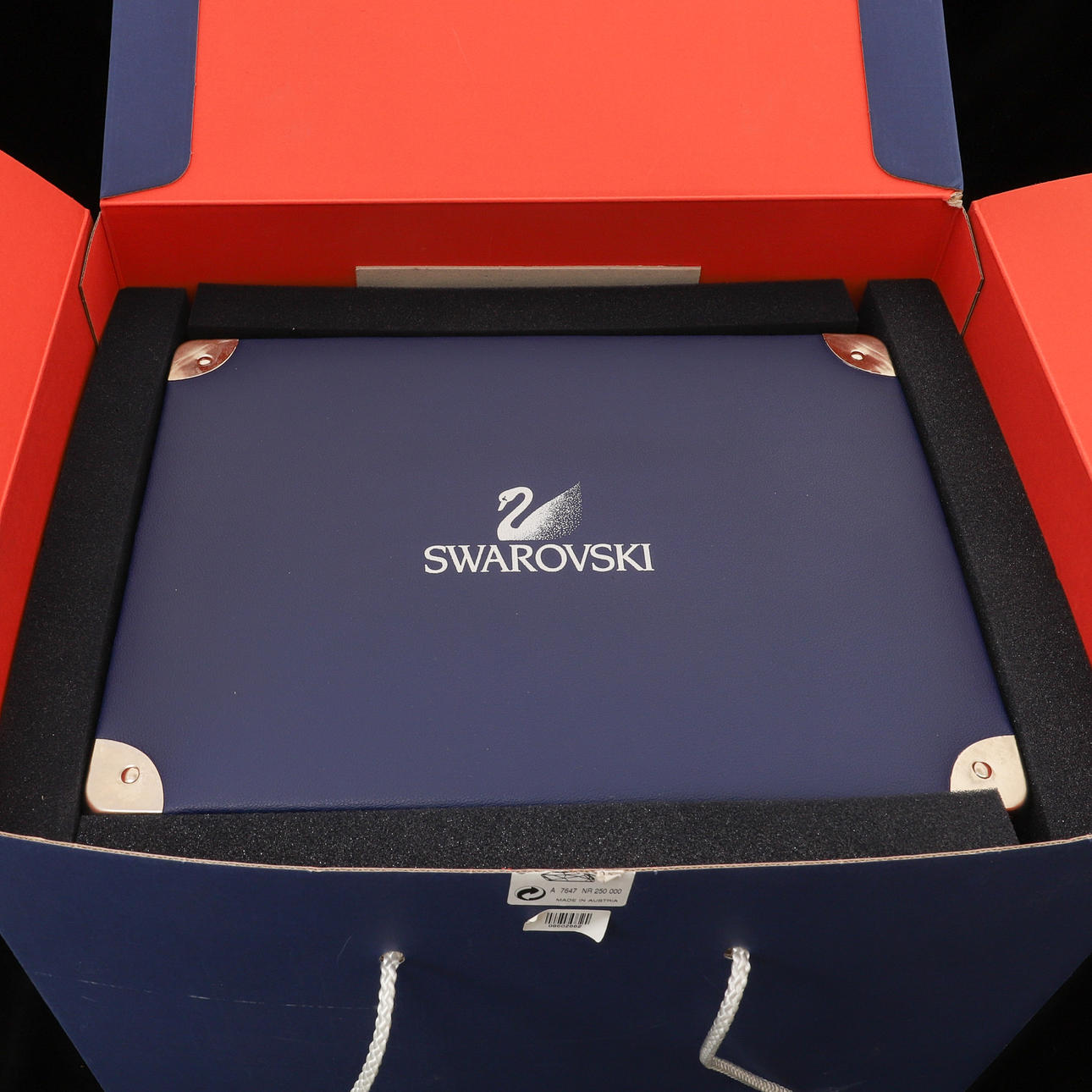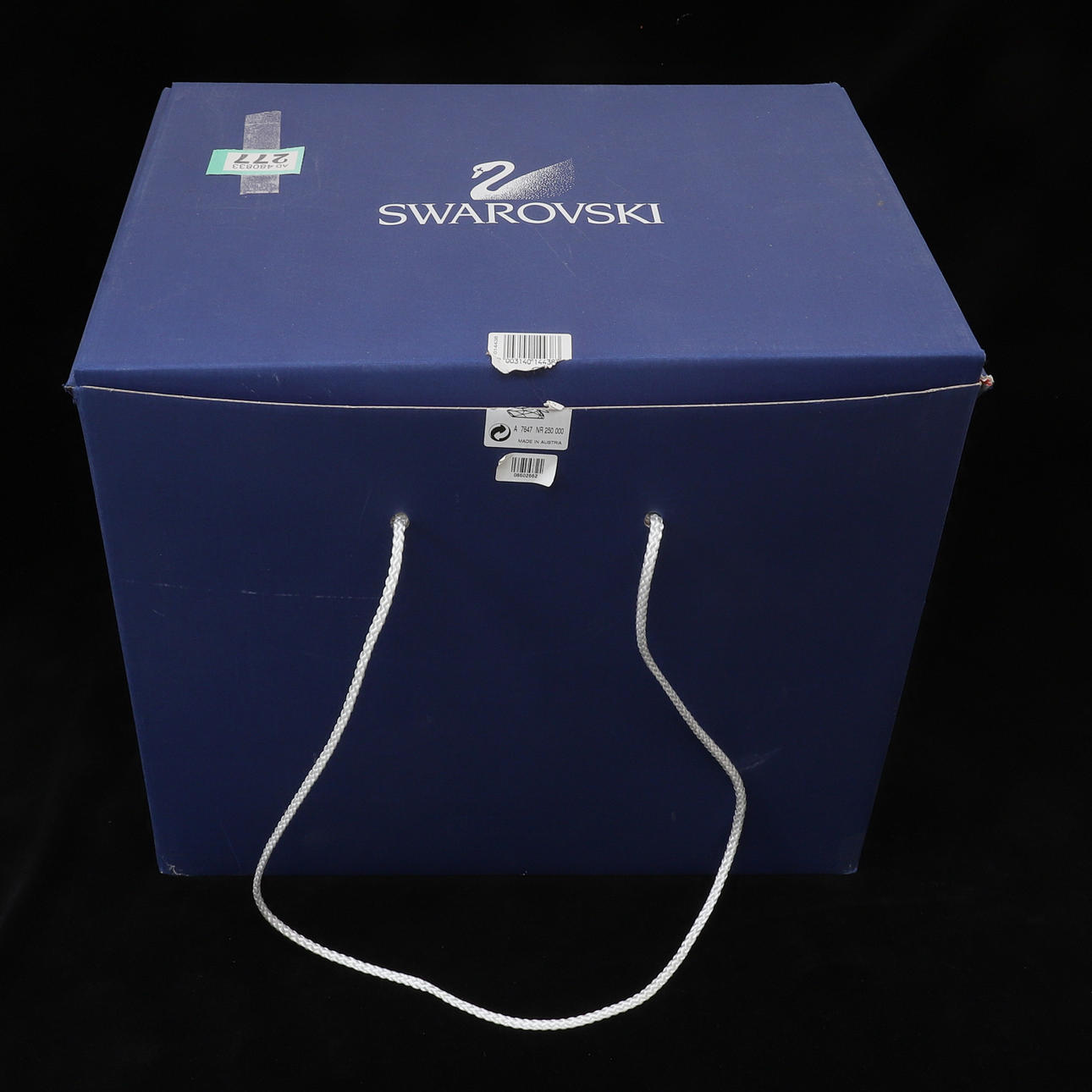 number 014438, in clear faceted crystal with coloured eyes, 24cm long x 11.5cm high, with certificate in original fitted hard case with metal clips and contained in original cardboard carrying box with rope handles.