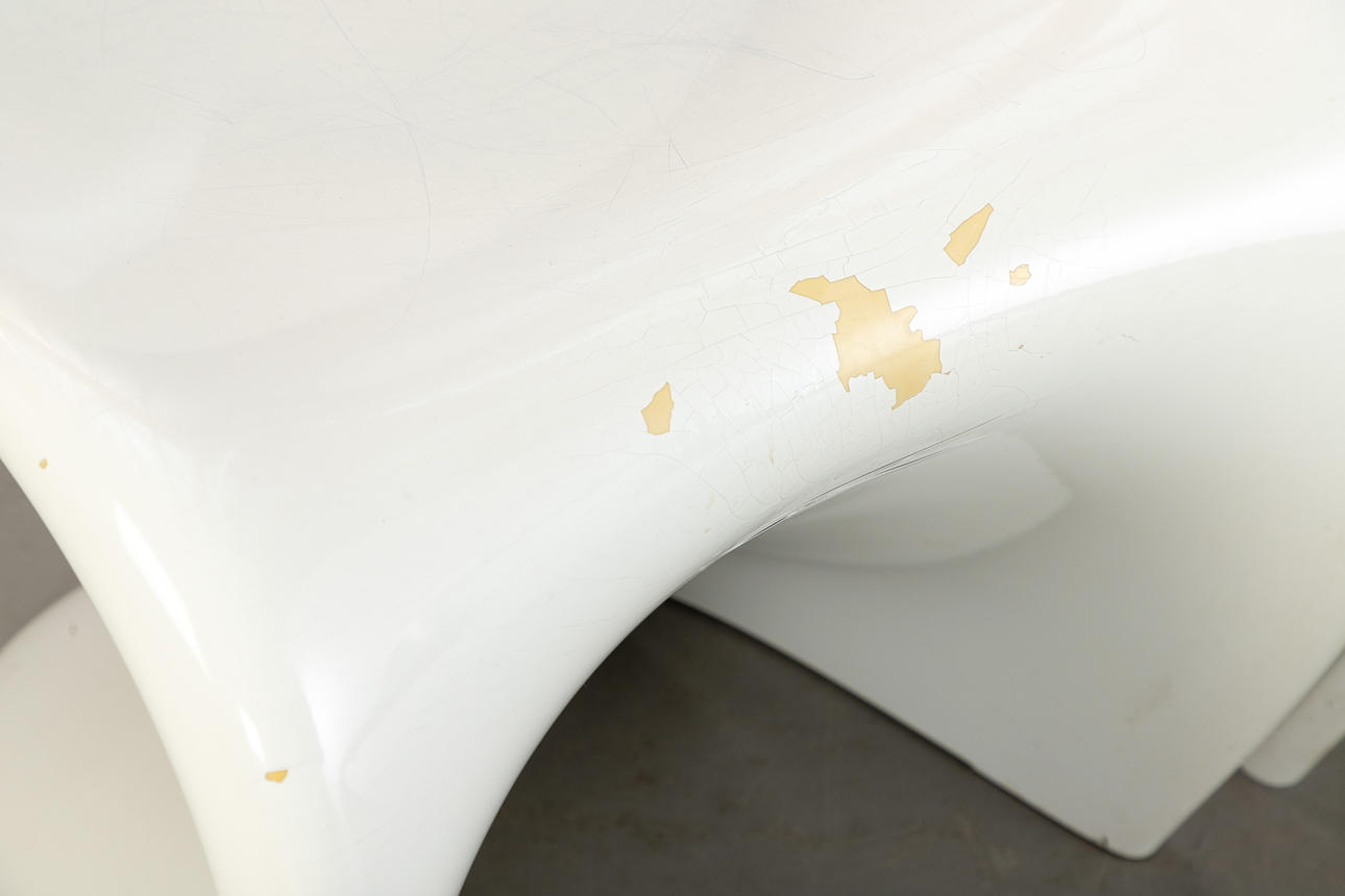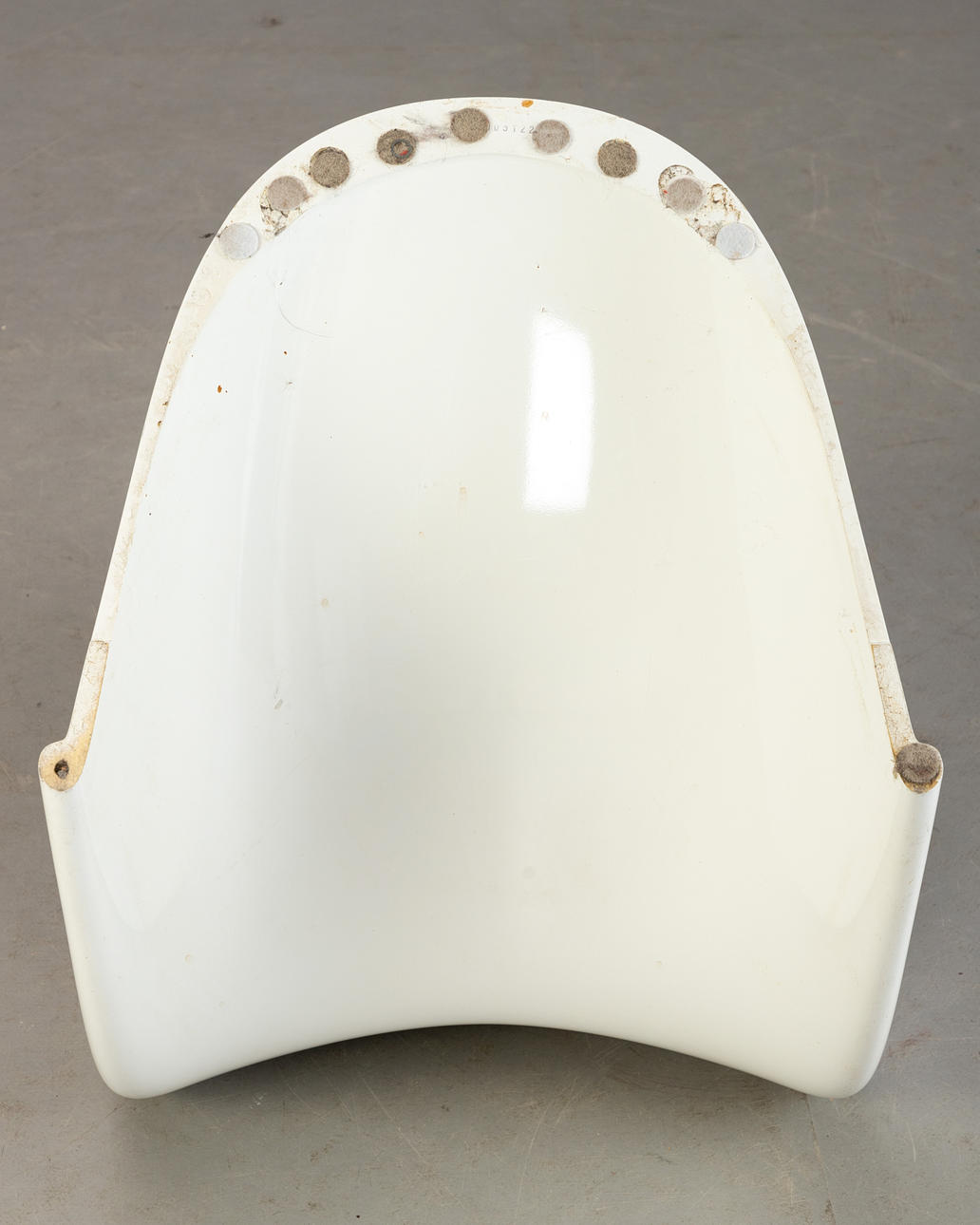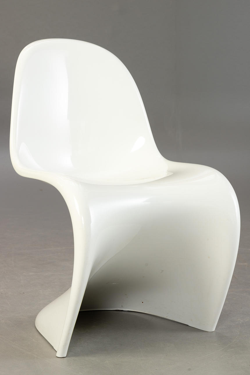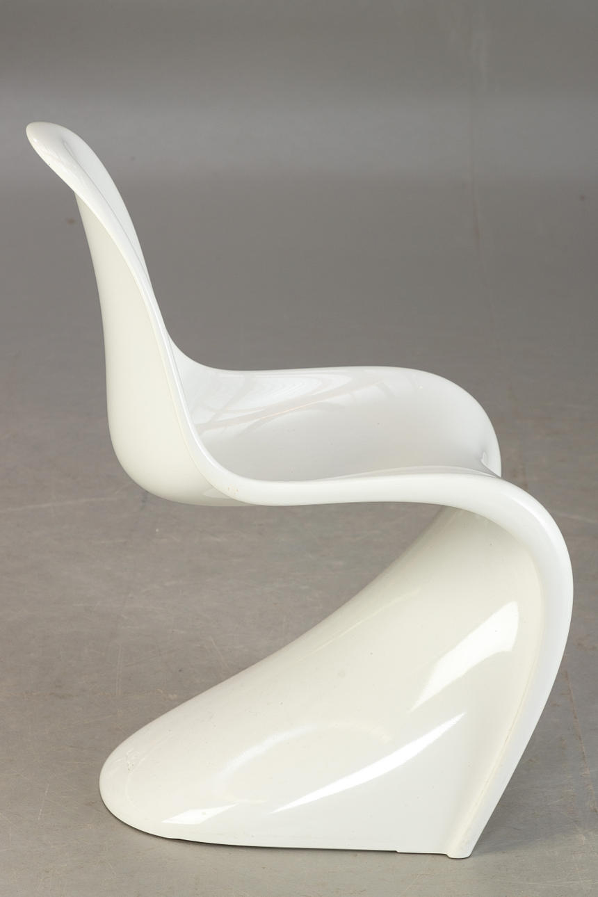 4 'Panton Chairs' by Verner Panton. Manufacturer: Vitra. Plastic construction, high-gloss white. Draft 1959. Marked below. Stackable.