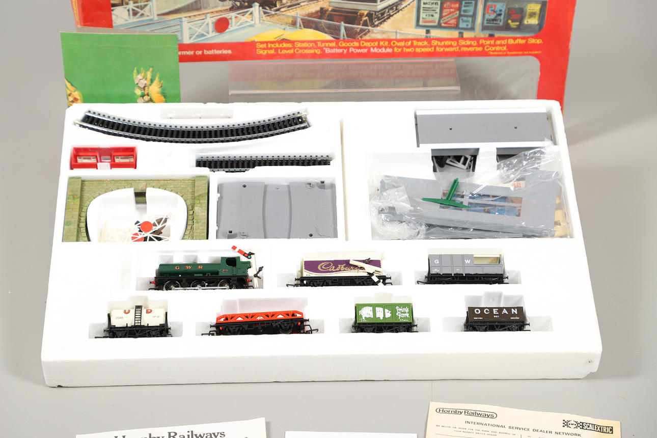 R170, a GWR electric train set including GWR locomotive, wagons, track and accessories. With some leaflet and original box.
