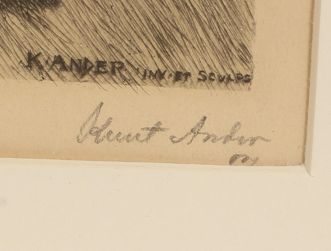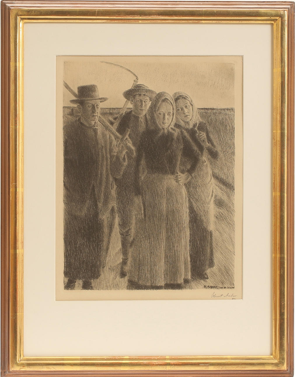 KNUT ANDER. Dry needle, "Harvest people", signed.