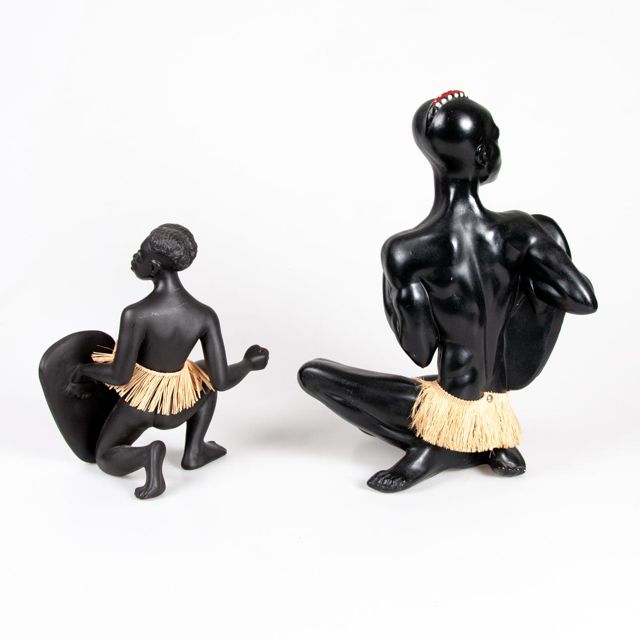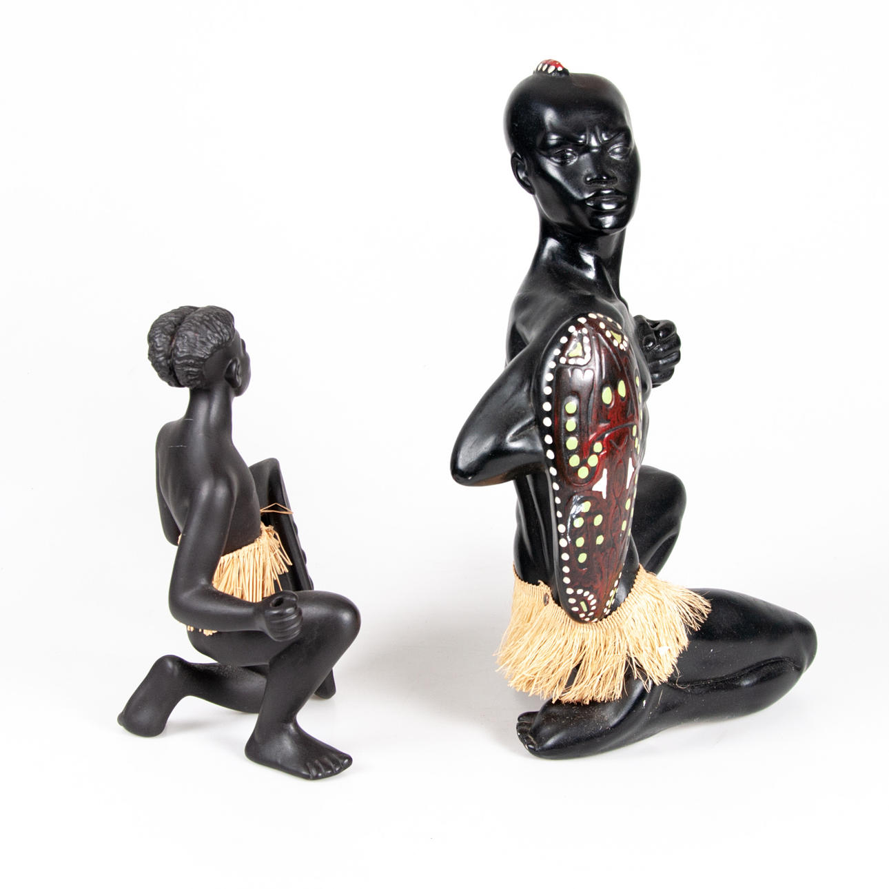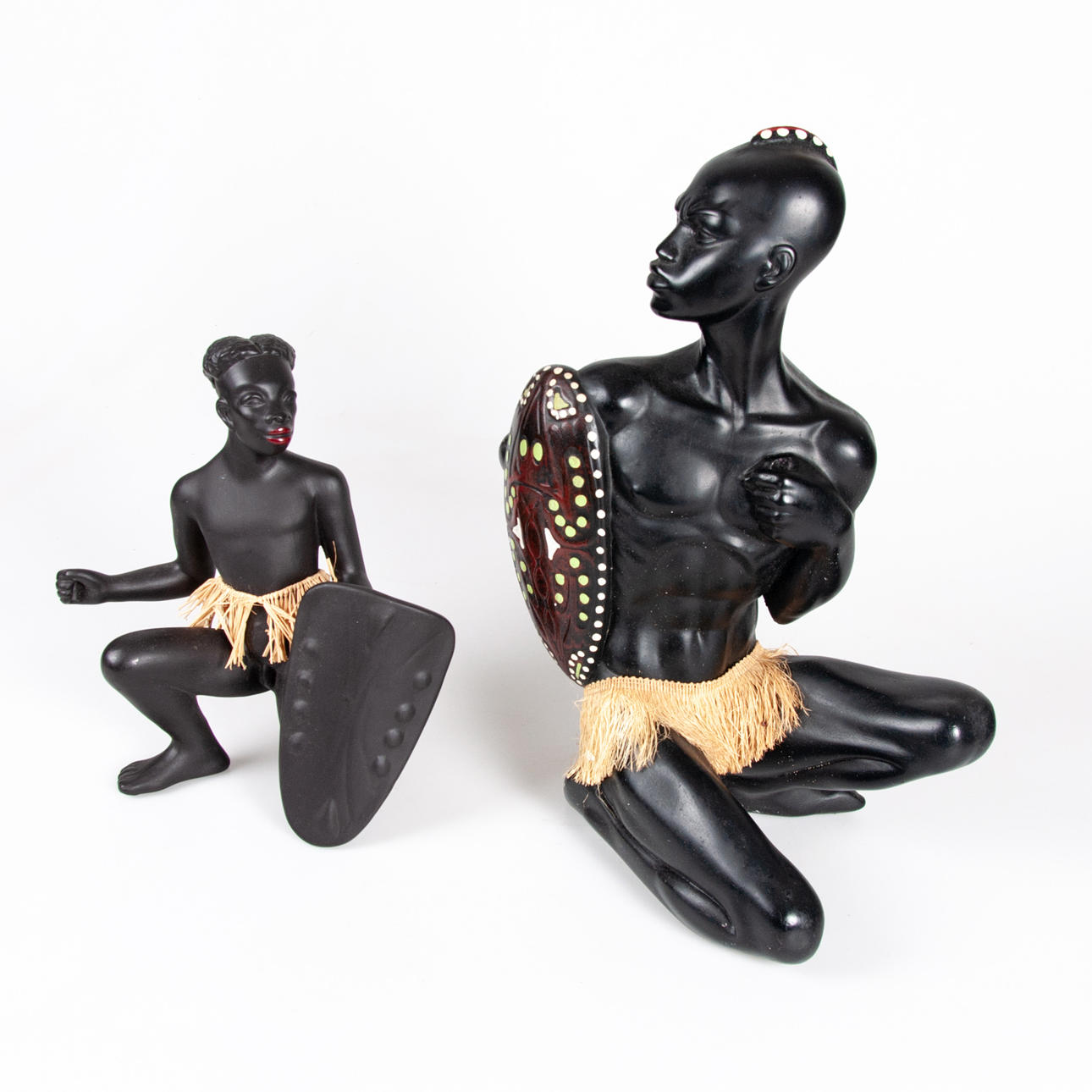 AFRICAN WARRIOR. 2 pcs, POTTERY AUSTRIA. 50s.