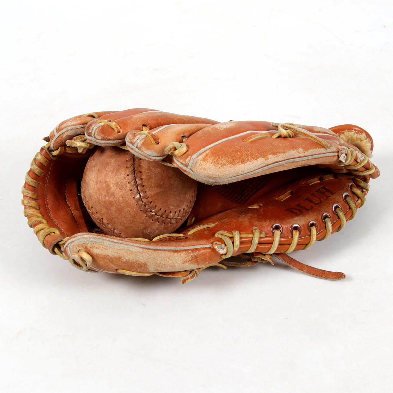 2655924. BASEBALL GLOVE and BALL, leather, Dluh, 1900s.