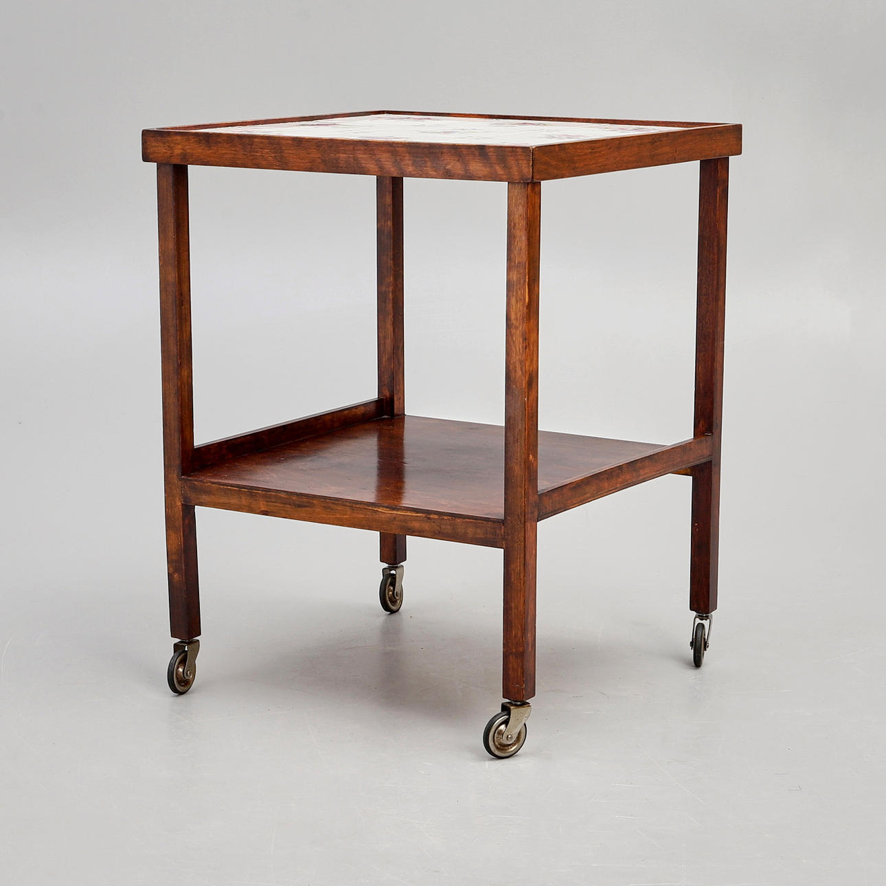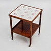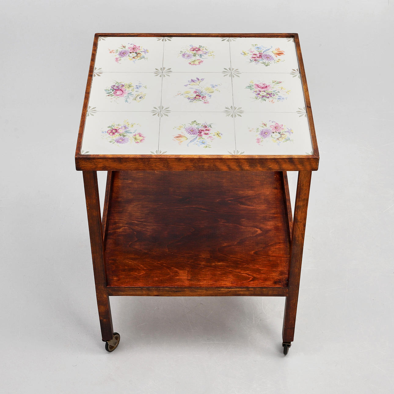 2657148. NEWSPAPER TABLE with tiles and shelf.