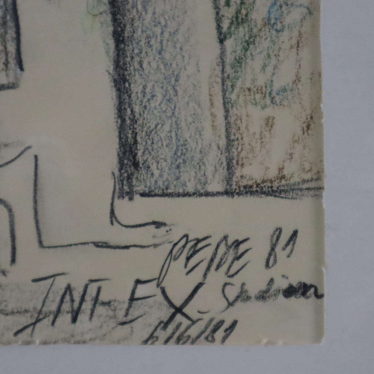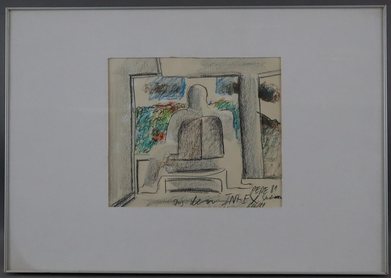 signed and dated "PEBE 81" lower right and titled, visible dimensions approx. 19.5 x 23 cm, framed in a mat under glass, total dimensions approx. 35 x 50 cm