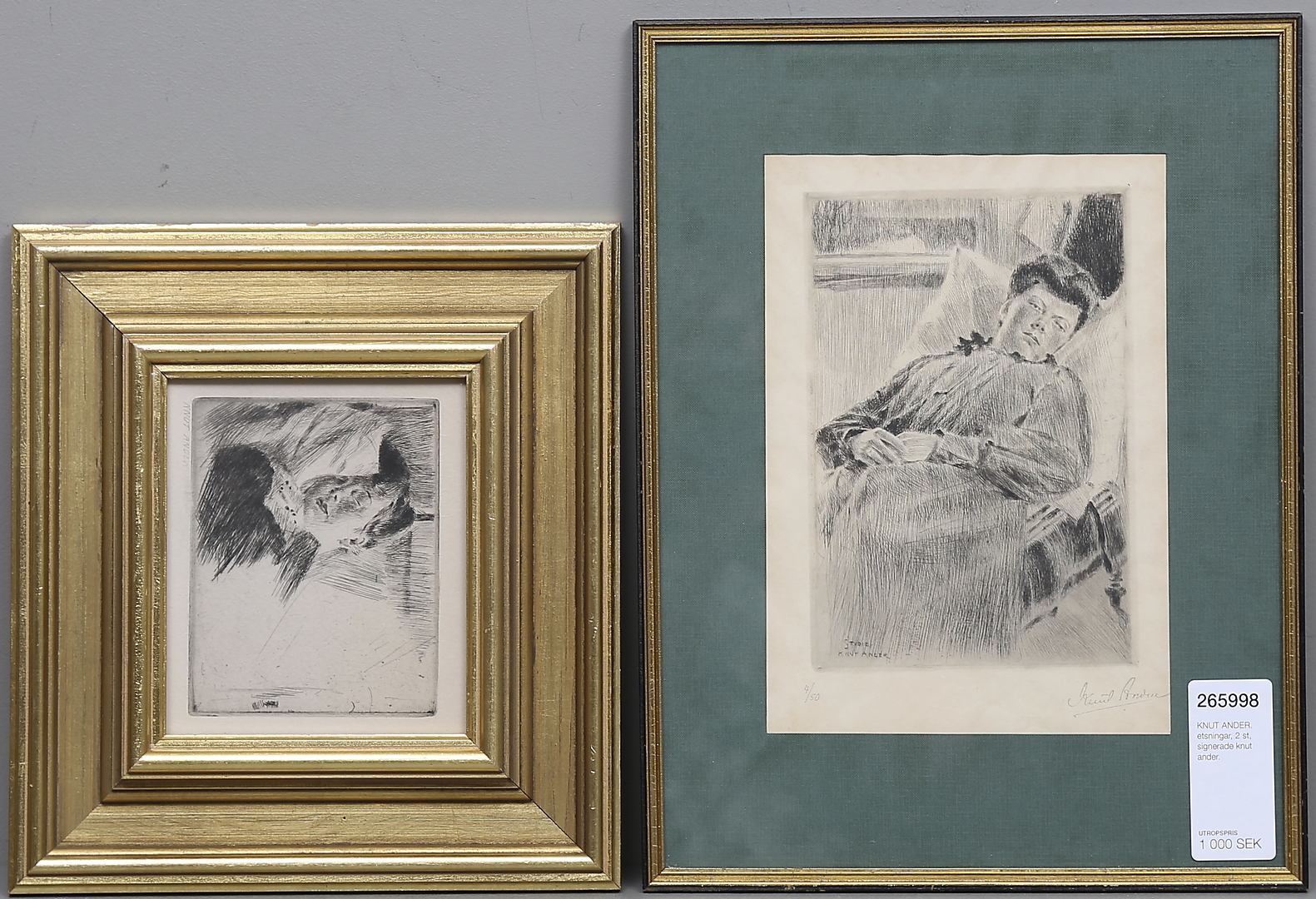 265998. KNUT ANDER. etchings, 2 pcs, signed knot ander.