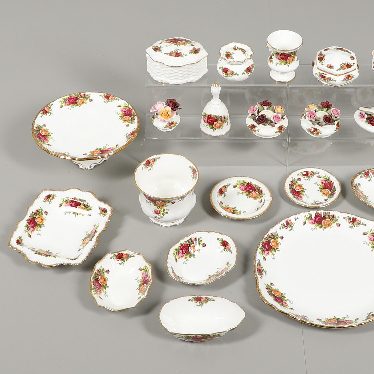 A mixed lot including a comport, large dish, a variety of dishes, flower posies, candle holder and other items.