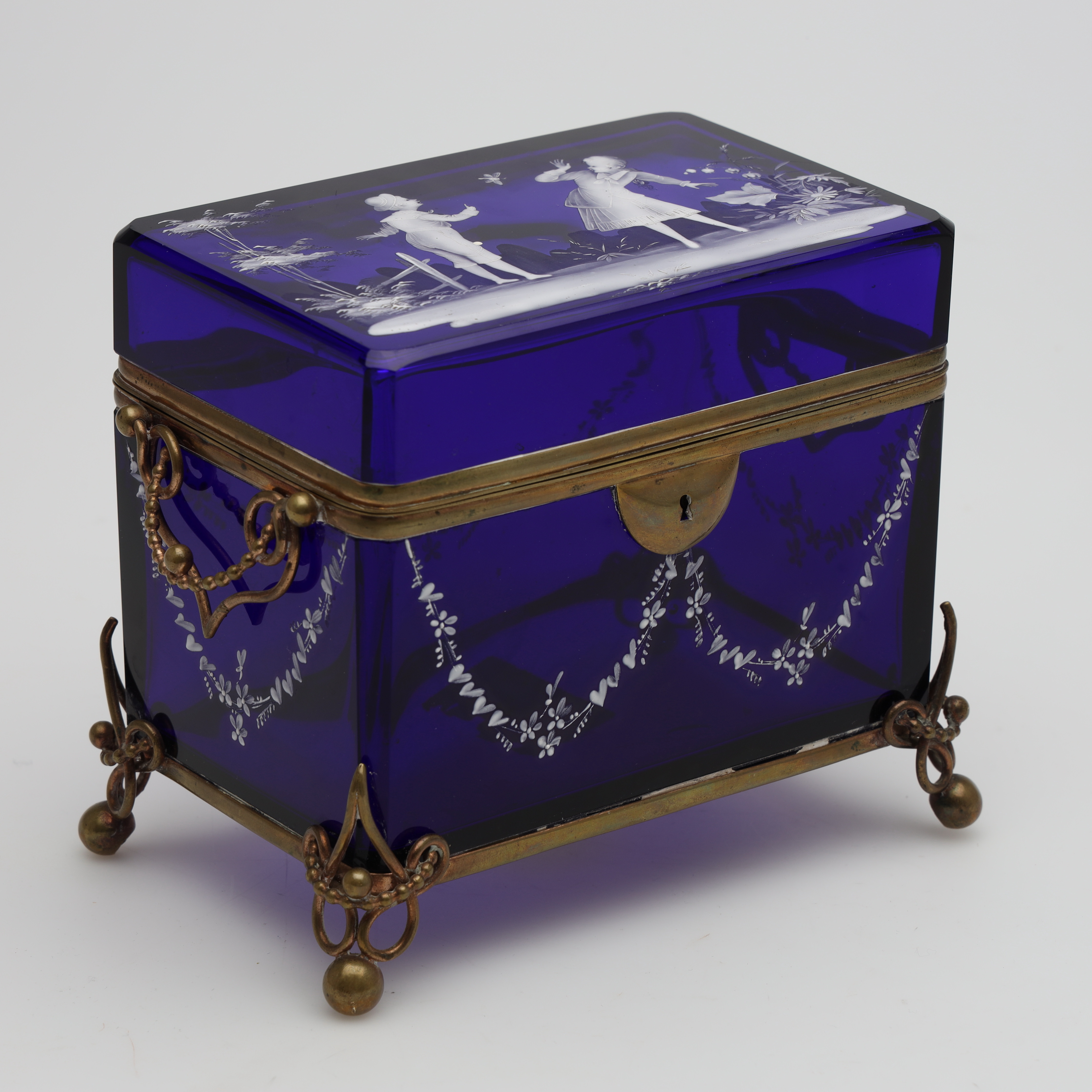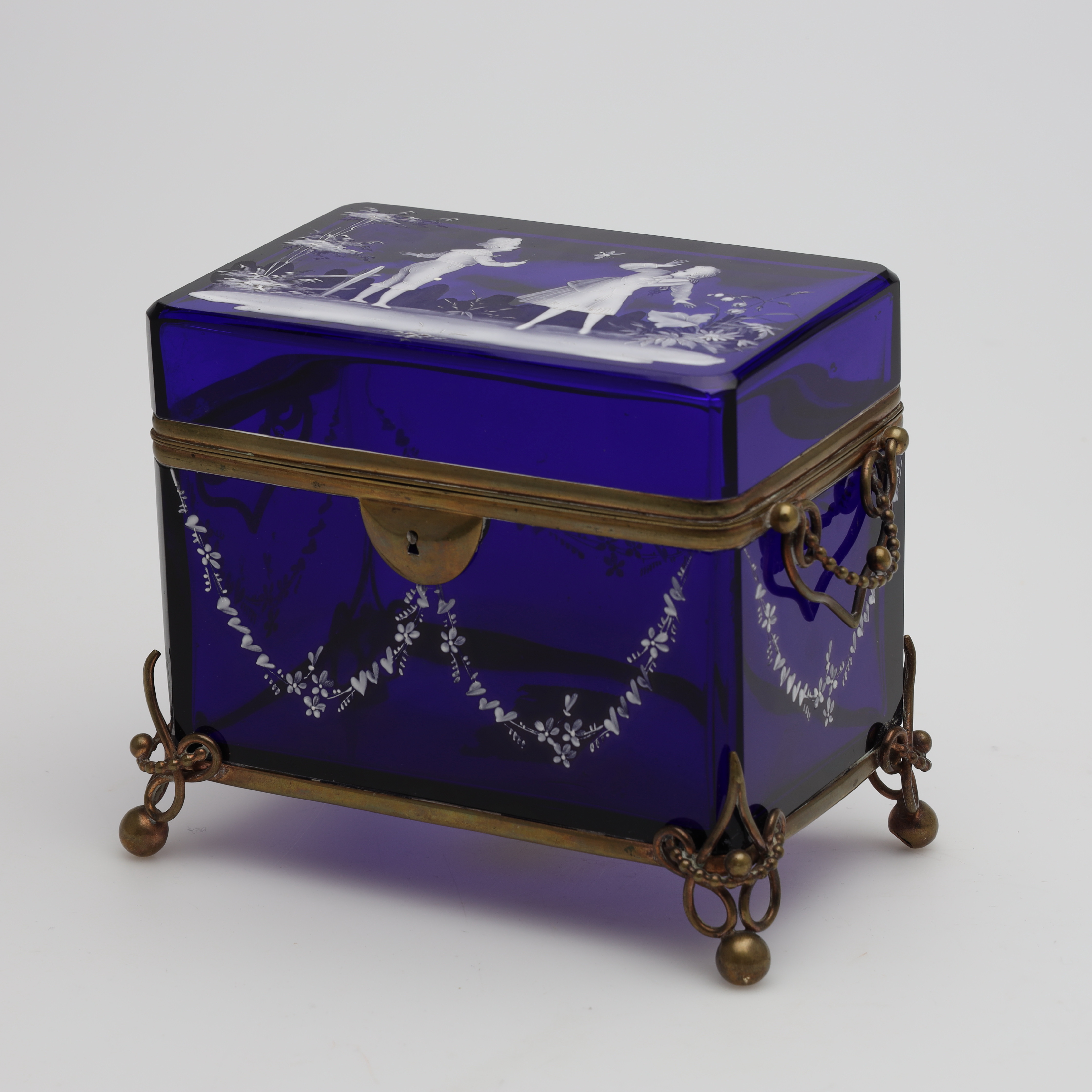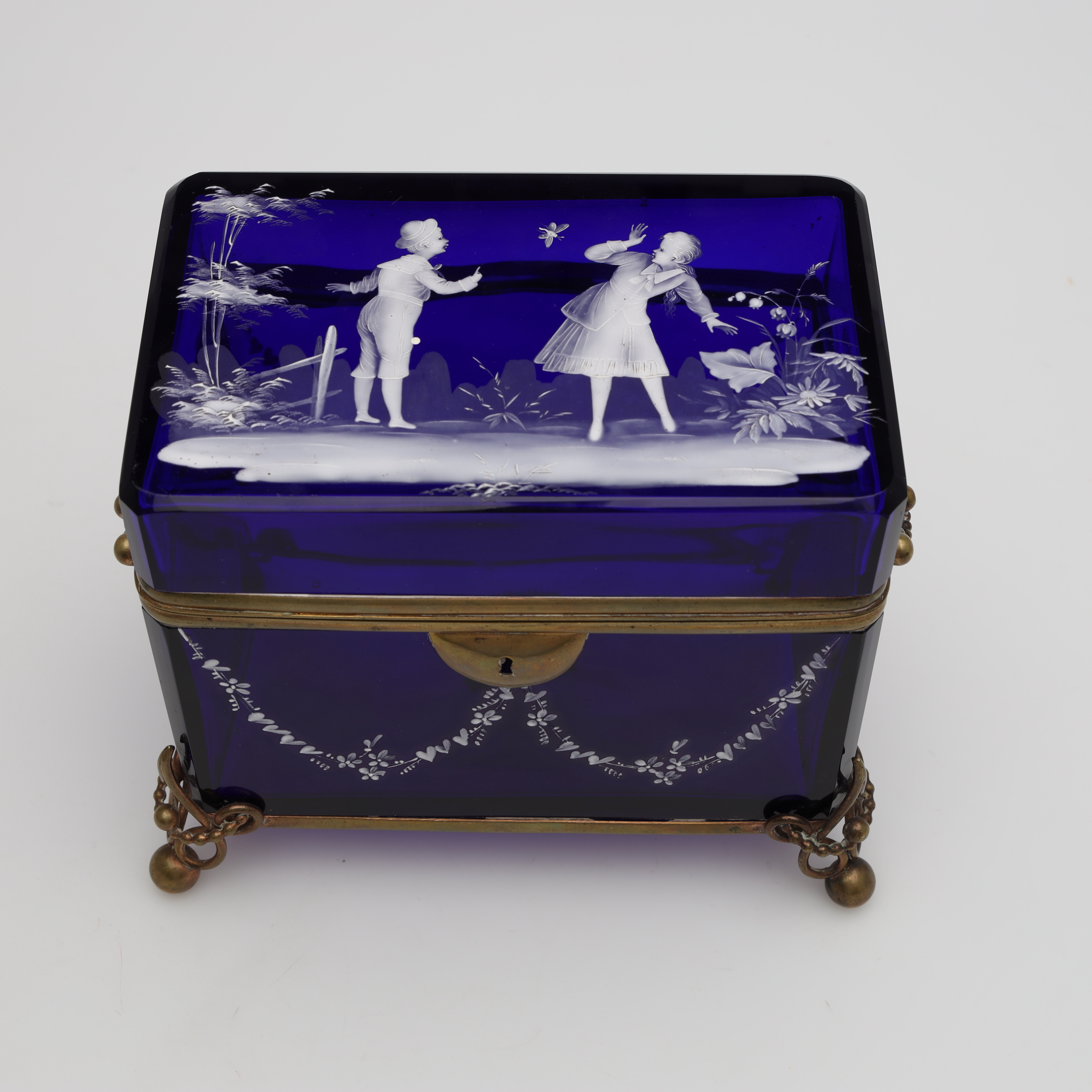 2660930. JEWELRY BOX, glass, Mary Gregory.