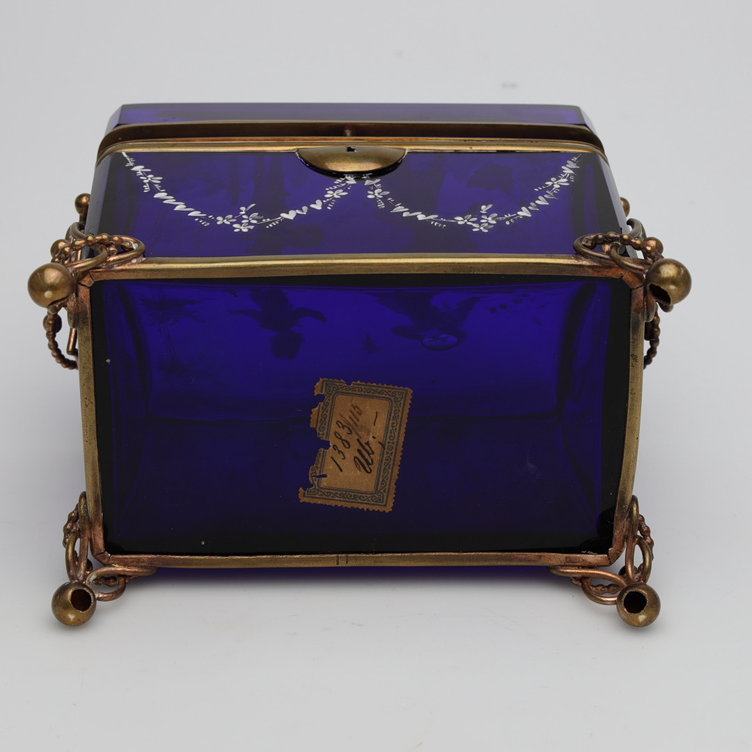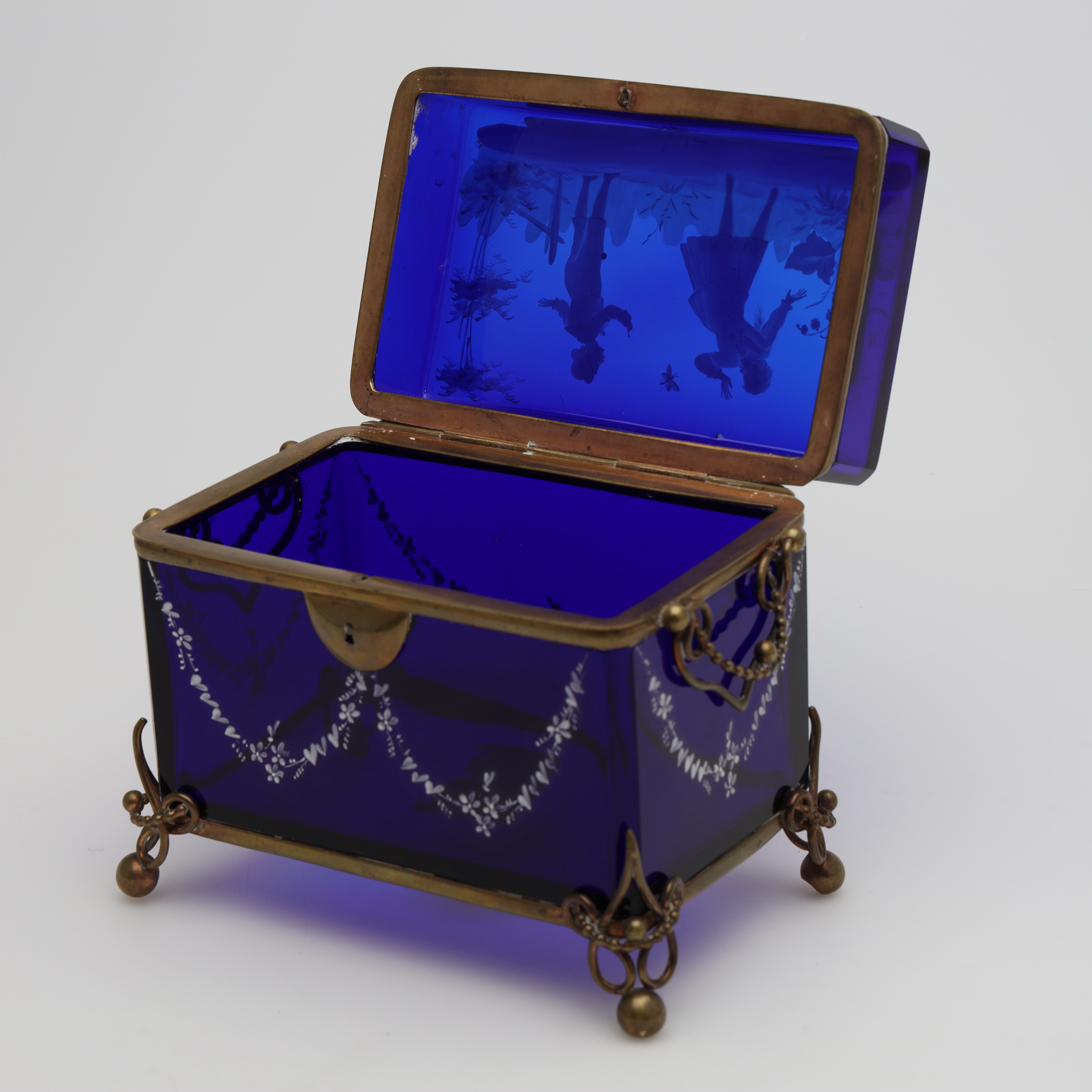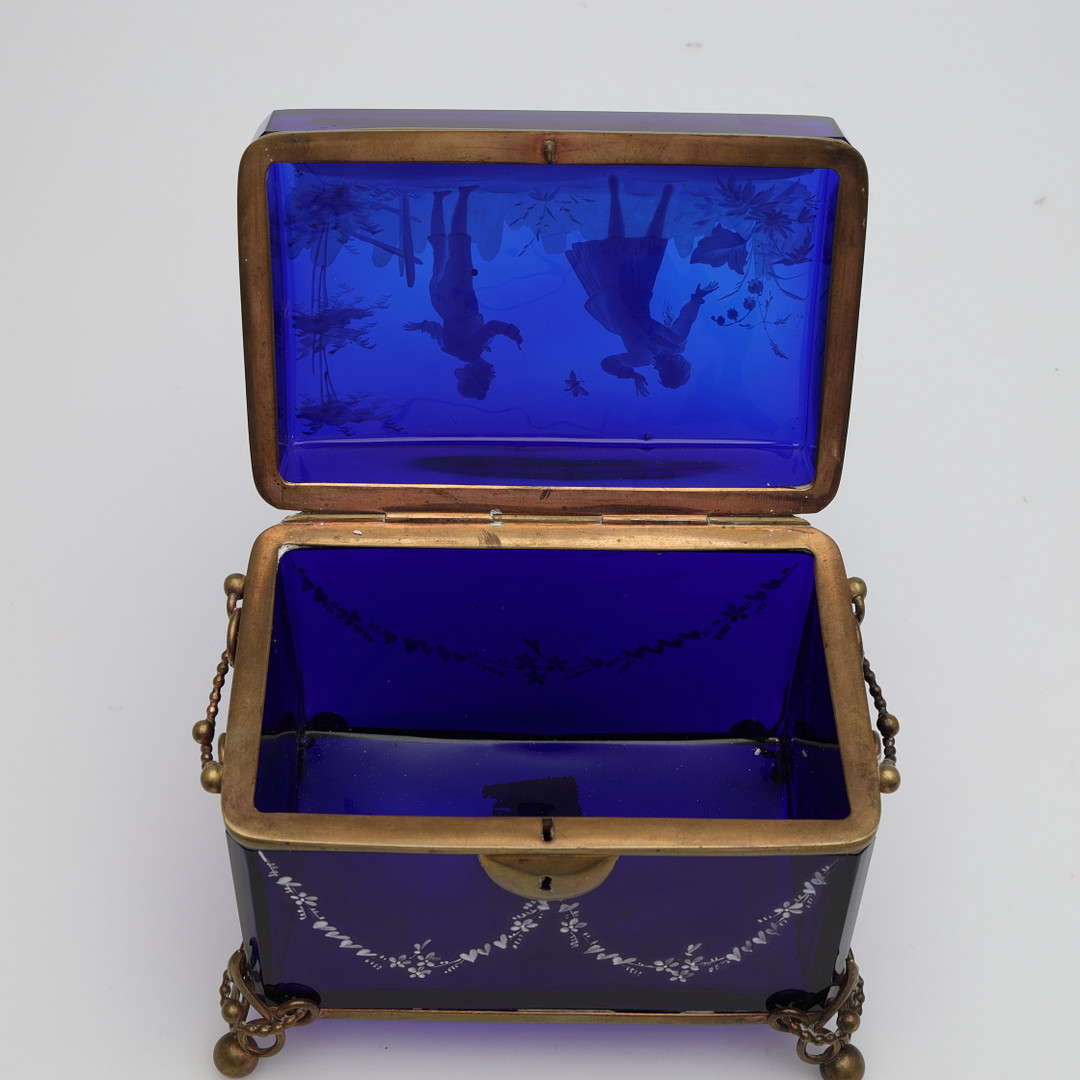 2660930. JEWELRY BOX, glass, Mary Gregory.