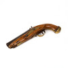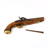 Normal wear and tear, old repair. Mechanism works half and full tension (a little hard). A part is missing at the barrel.