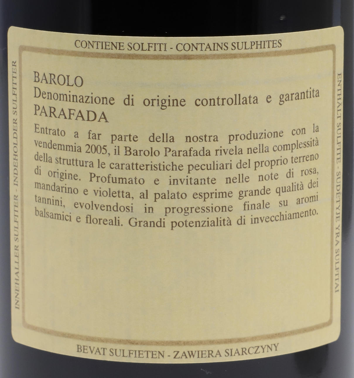 2666830. PALLADINO BAROLO PARAFADA, 2012.