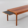 Veneered with rosewood. In the hem, two pull-out discs. Not marked. Length approx. 161 cm, width approx. 60 cm, height 50 cm.