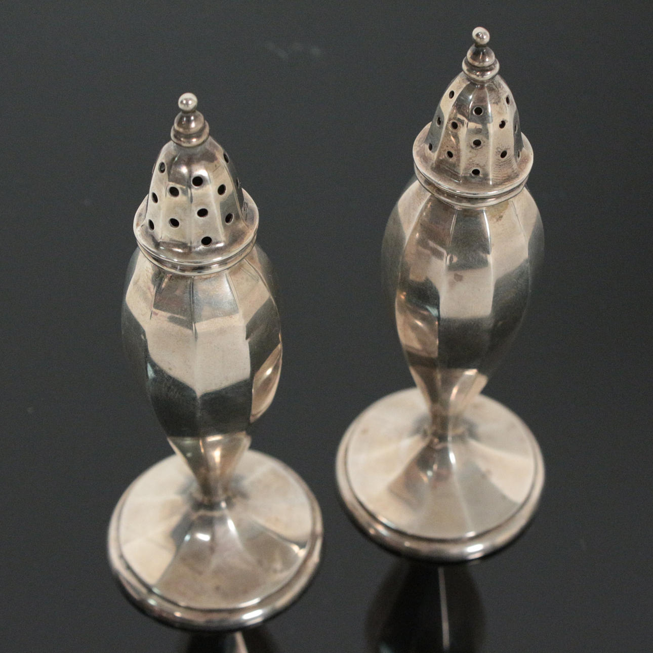 Salt and pepper shakers made of 925 silver, hallmarked on the underside, dimensions approx.: H. 13.5 cm, weight approx.: 75 grams.