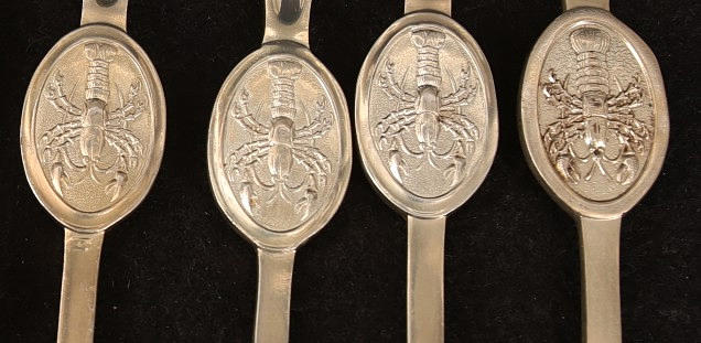 2673035. SHELLFISH CUTLERY. Nickel silver, 7 pieces.