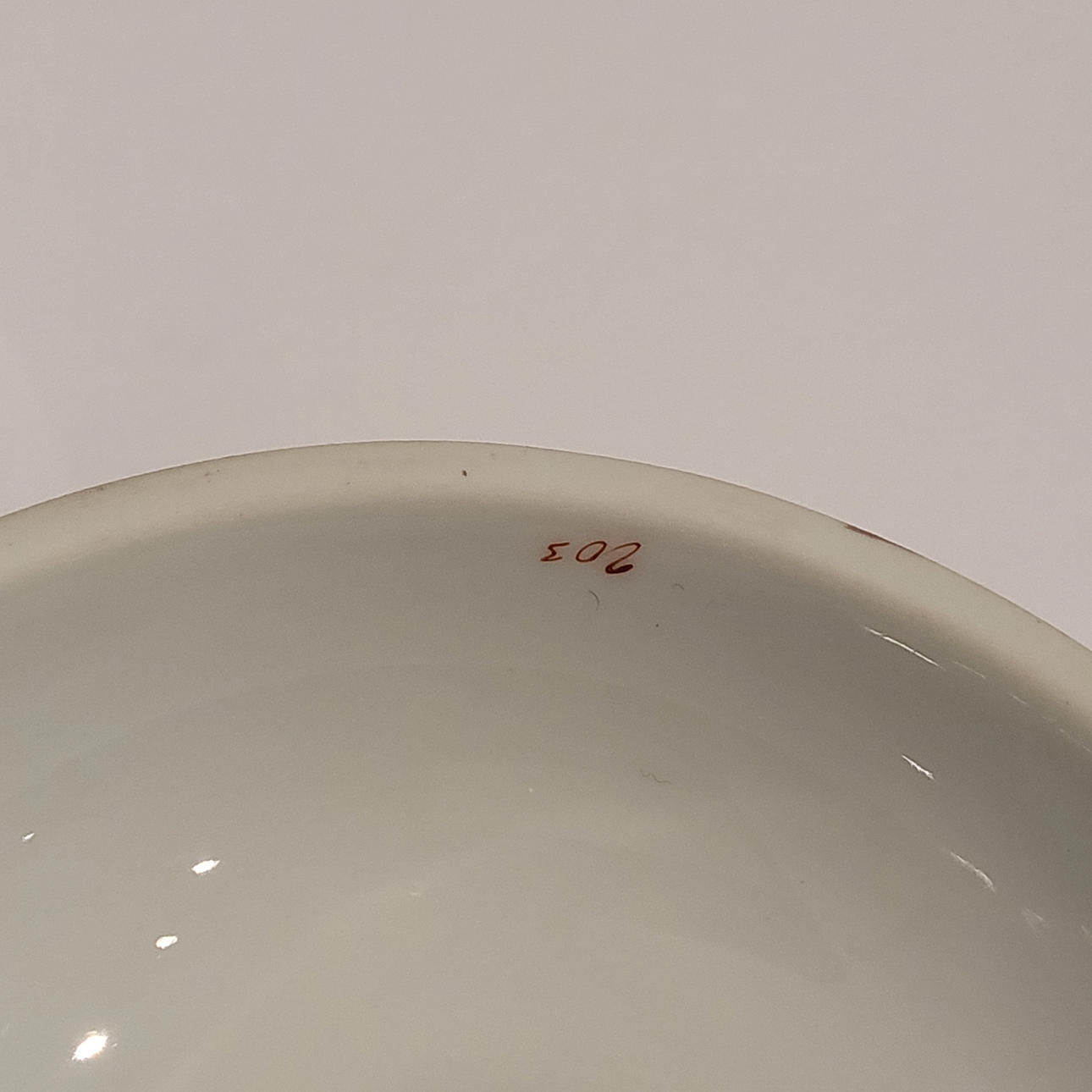 45110/203. White porcelain with flower decoration and matching border. Golden edge.