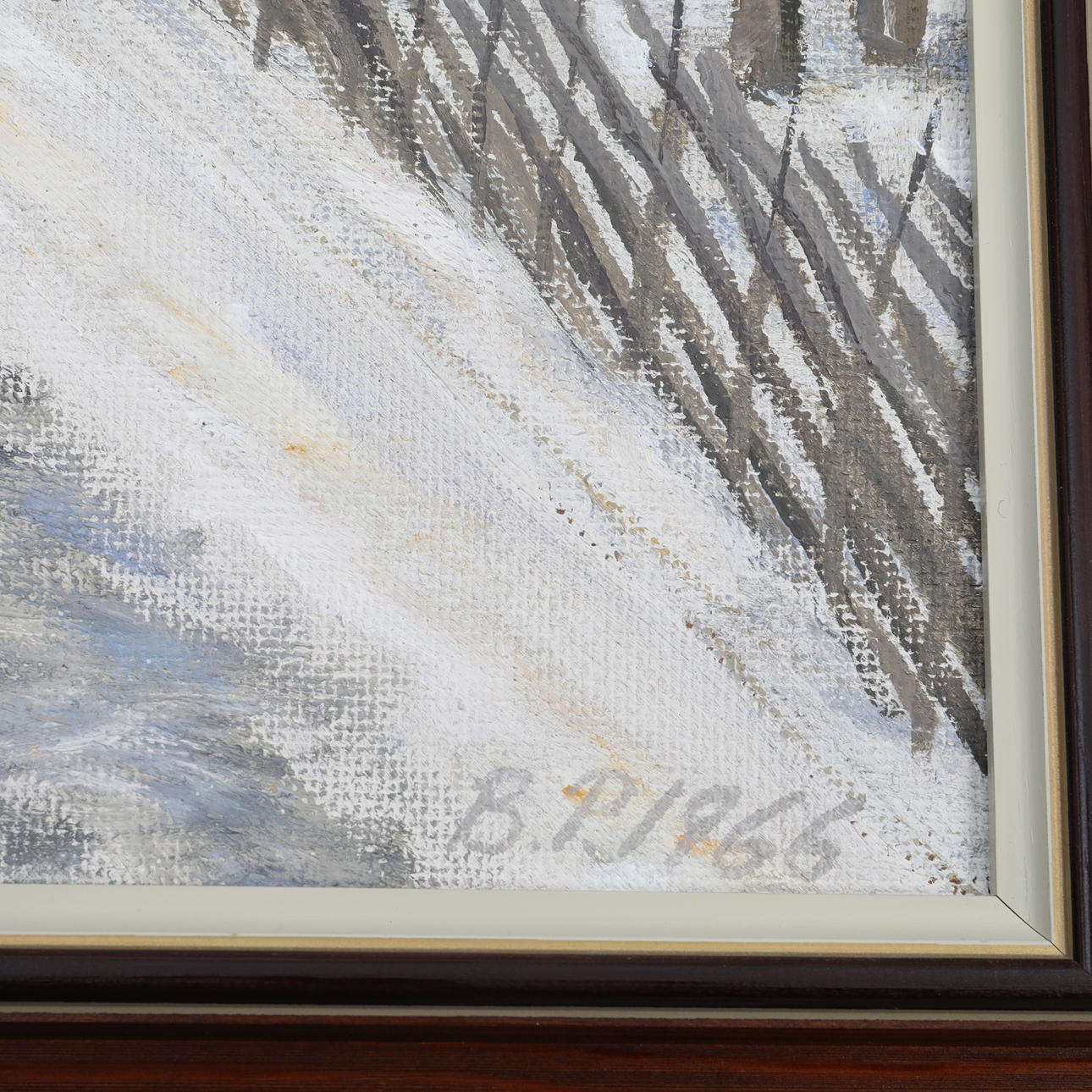 An oil painting of a beautiful winter landscape, on Board, signed BP Bo Persson, Sproge, Gotland, and dated 1966.