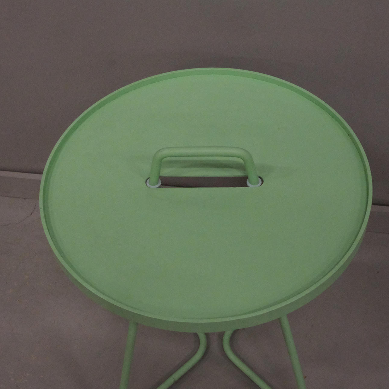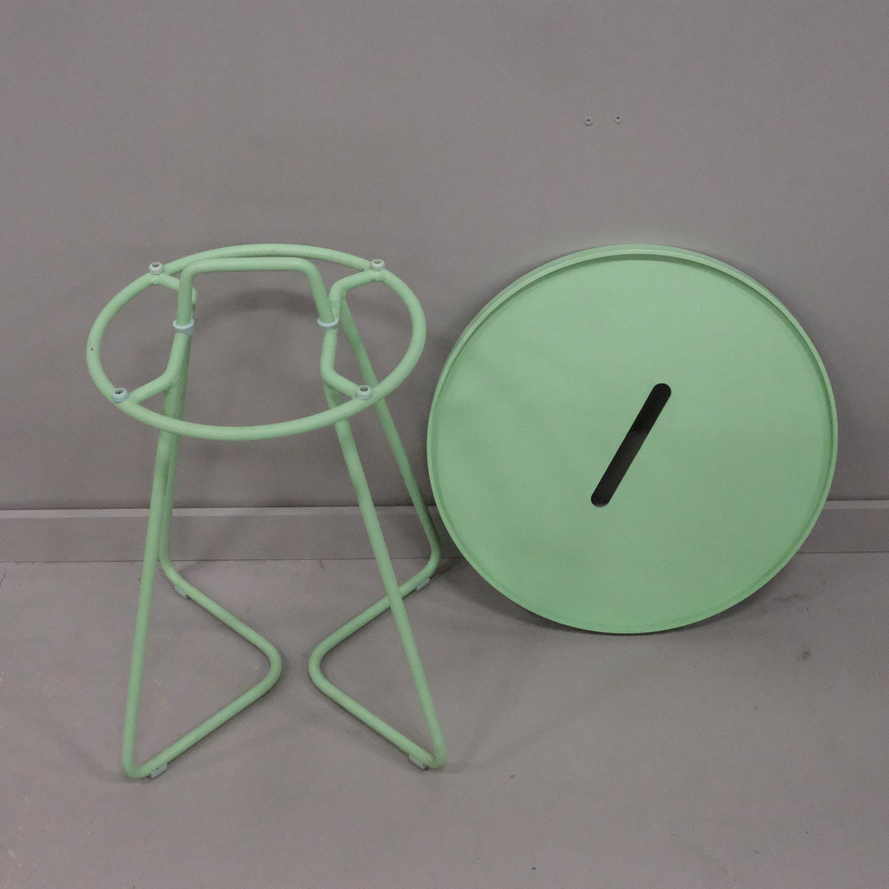 Model "On the move": Green lacquered. Divisible. Height: approx. 47.5 cm. Disc diameter: approx. 44 cm.