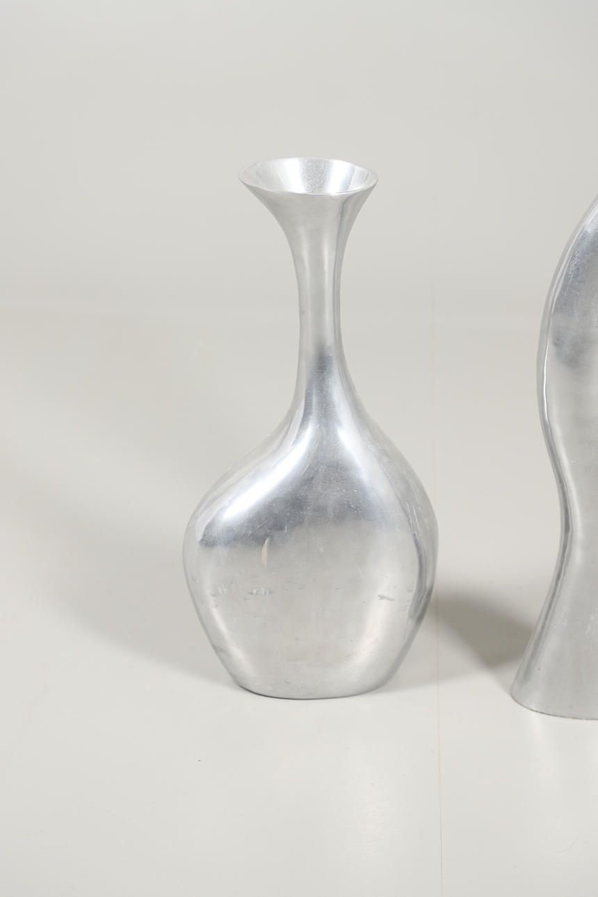 TWO CHROME METAL DECORATIVE SCULPTURES.