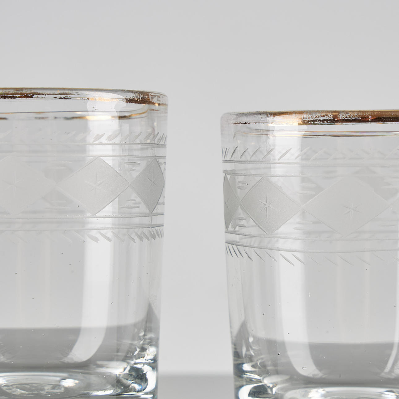 Cut and etched decoration and gilded rim, diameter 6.5 cm height 8.5 cm.