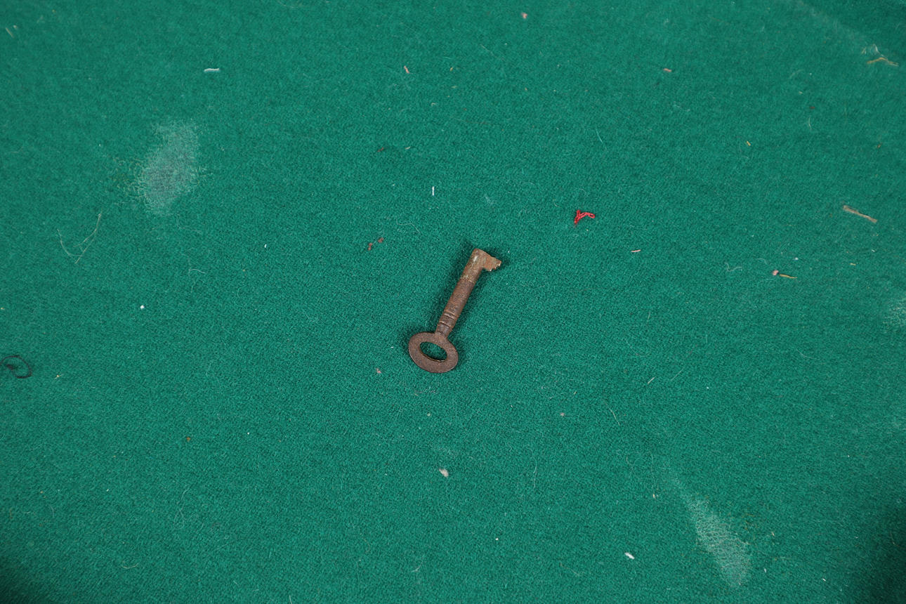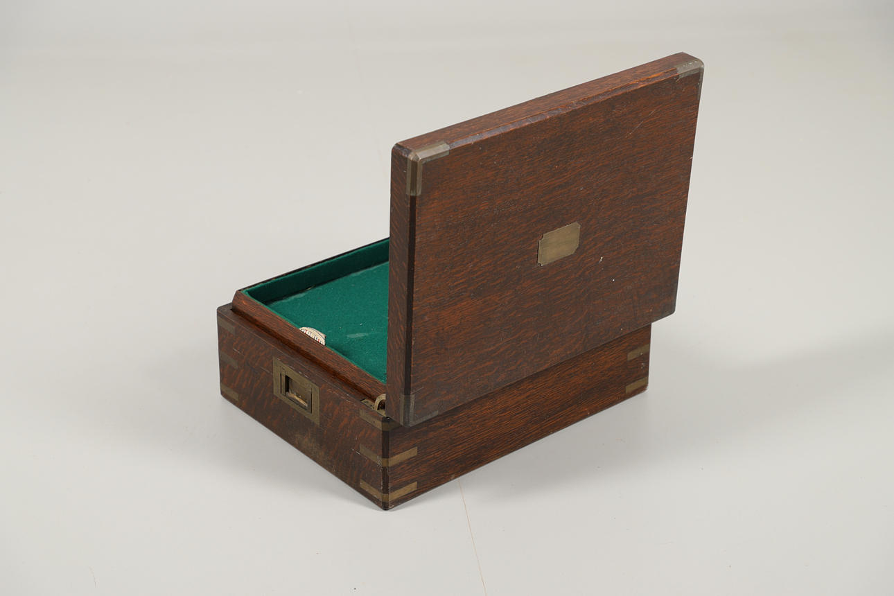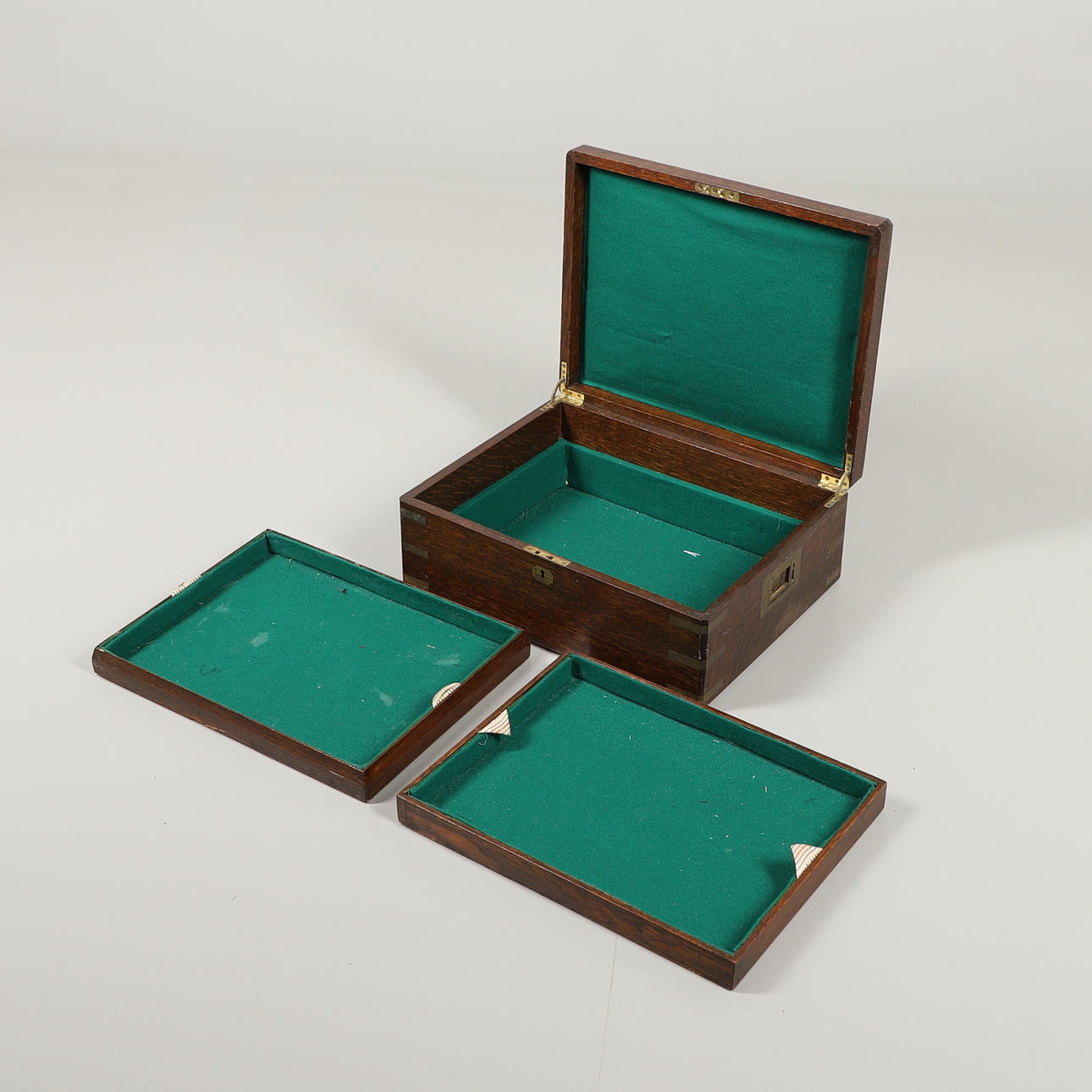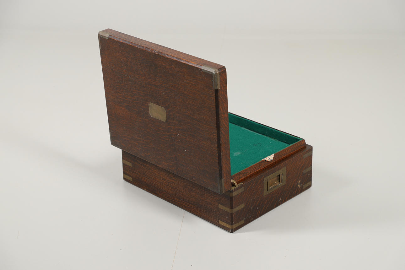 with brass brackets, with two pull out shelves, height 18cm, width 45cm, depth 35cm, with key.