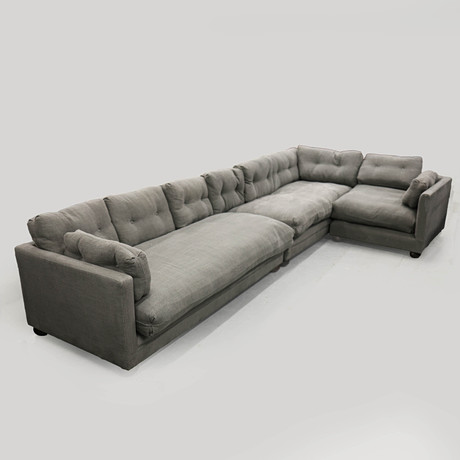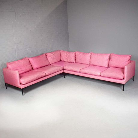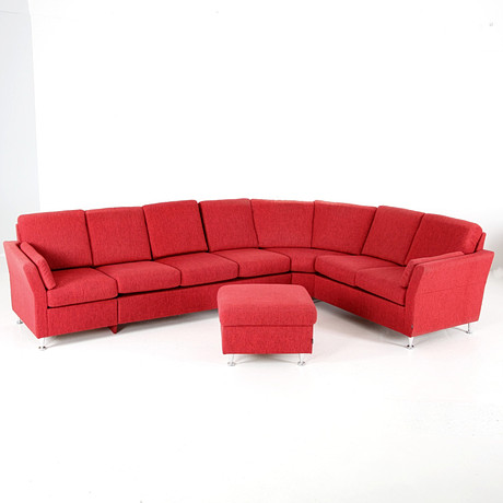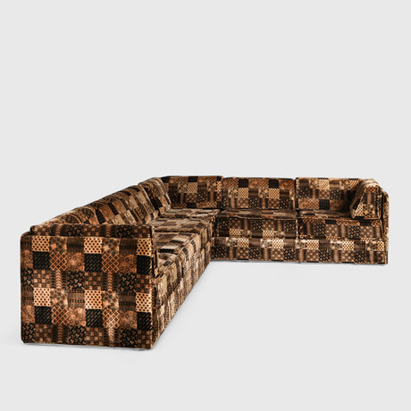 2698491. Eight-piece brutalist modular sofa / corner sofa with two side tables, suede, oak, 1960s (8).