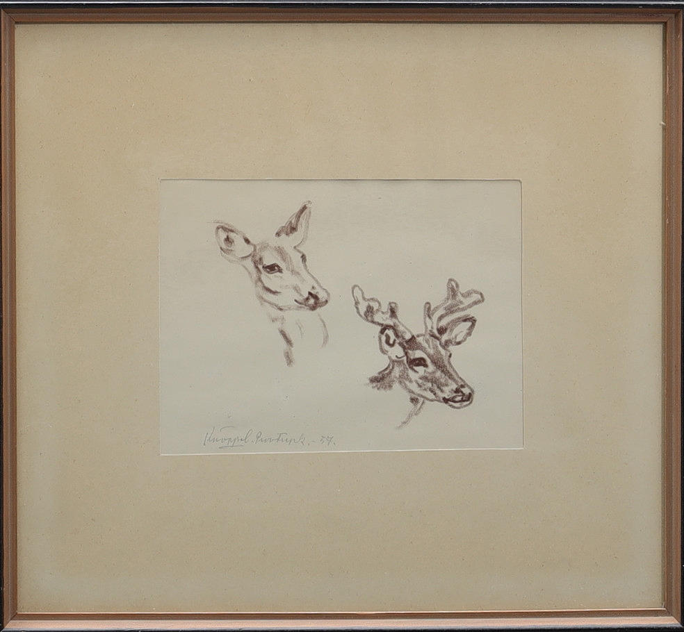 ARVID KNÖPPEL. Print, deer, signed and dated 1957.