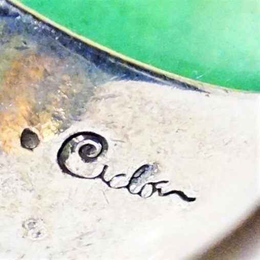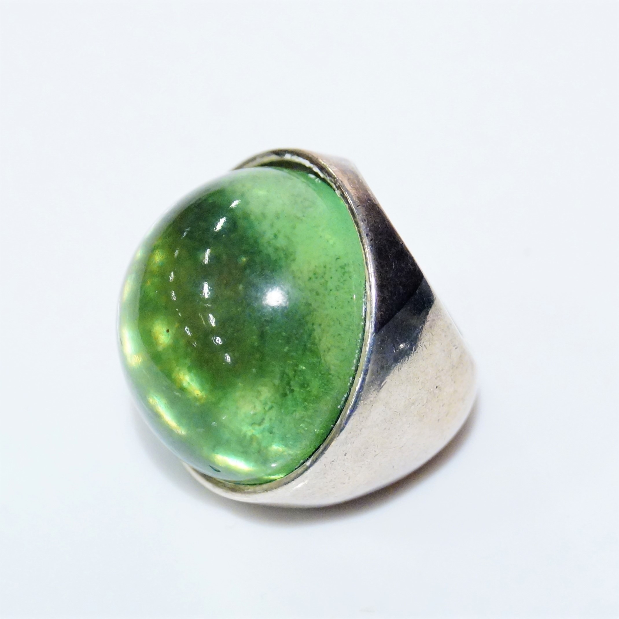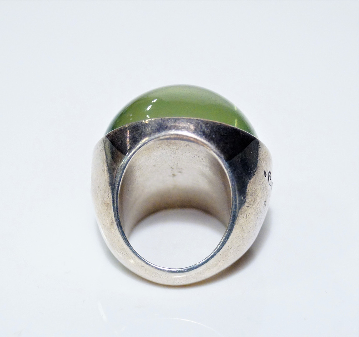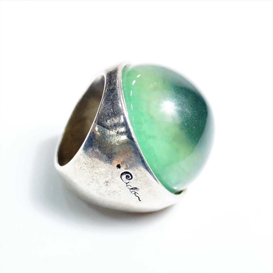 2703362. RING, silver, green stone, signed.