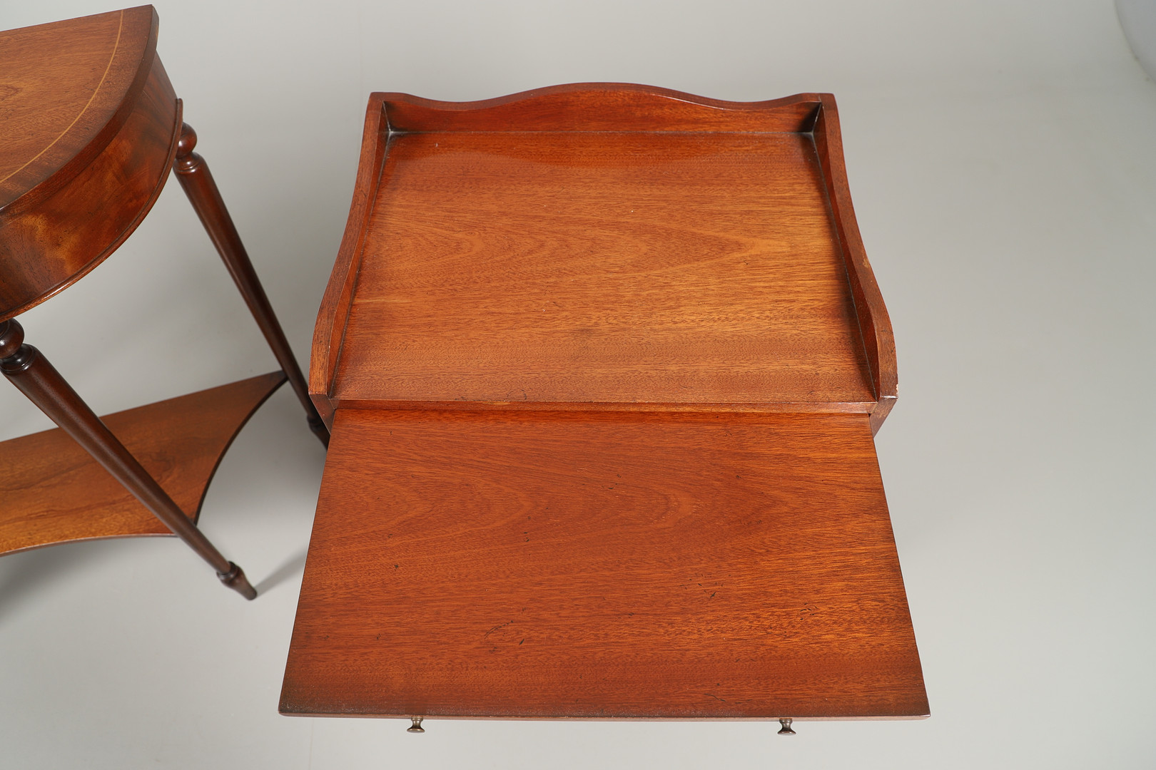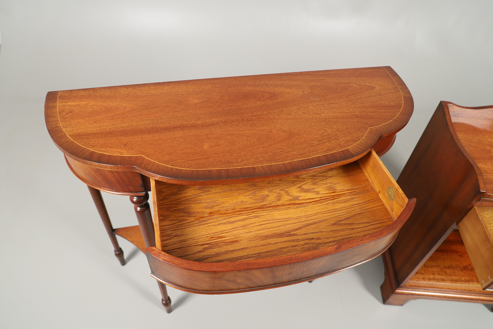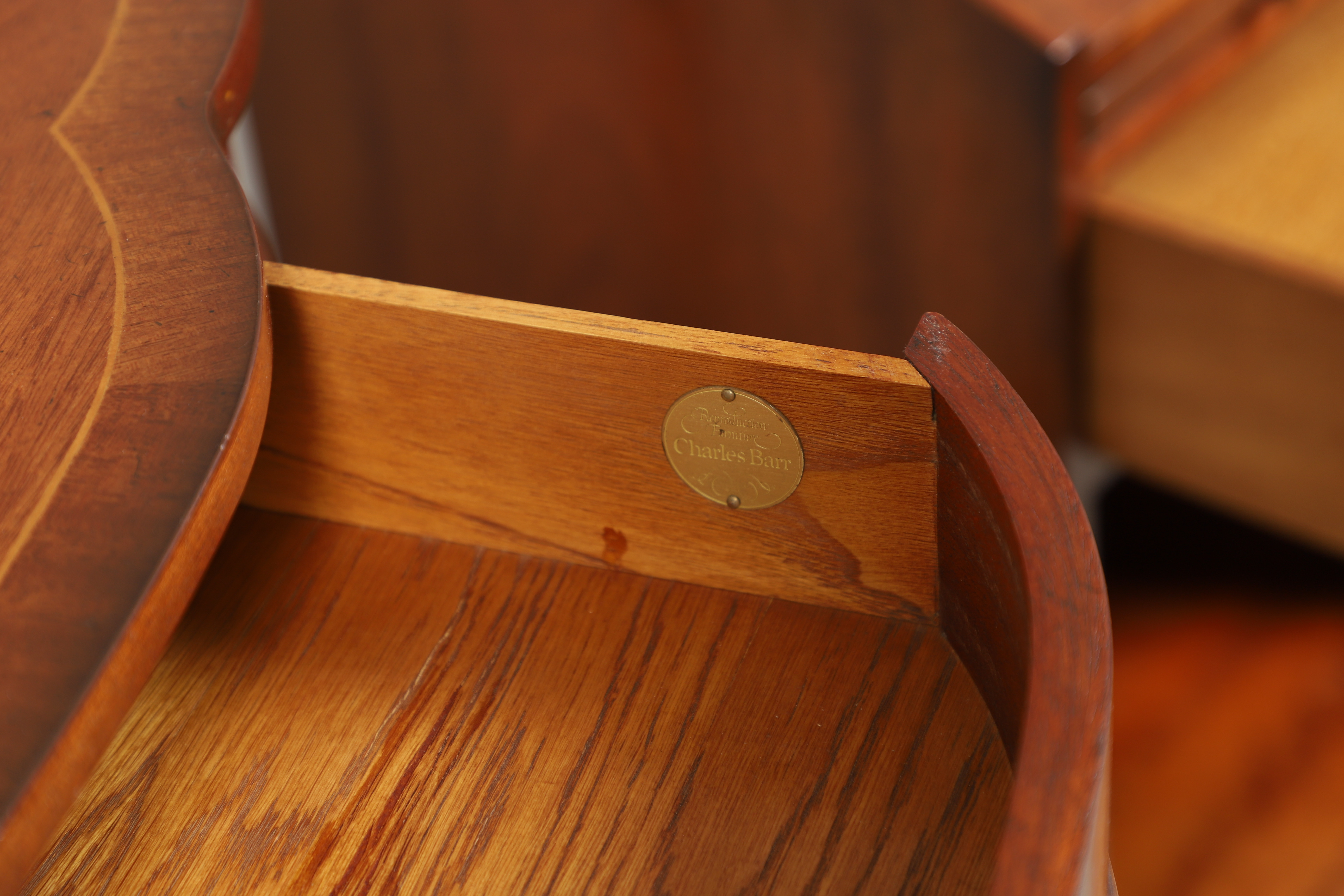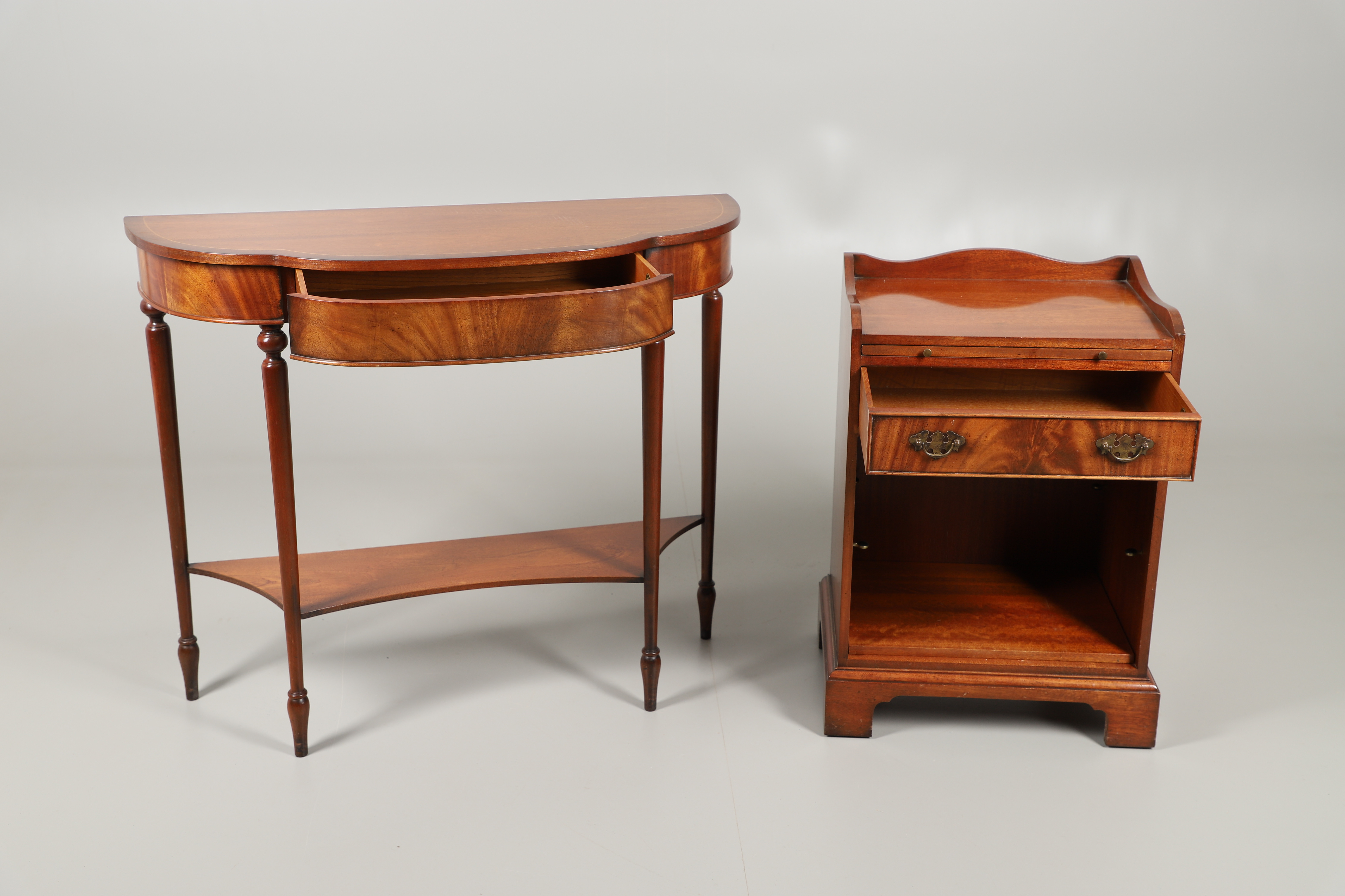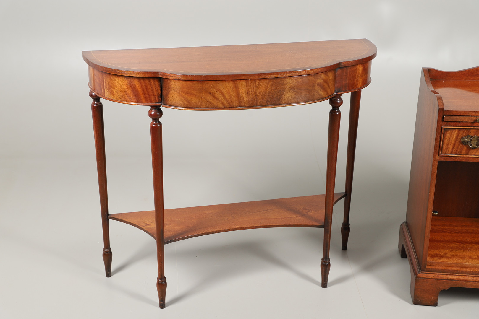 2705796. A CHARLES BARR REPRODUCTION SERPENTINE CONSOLE TABLE.