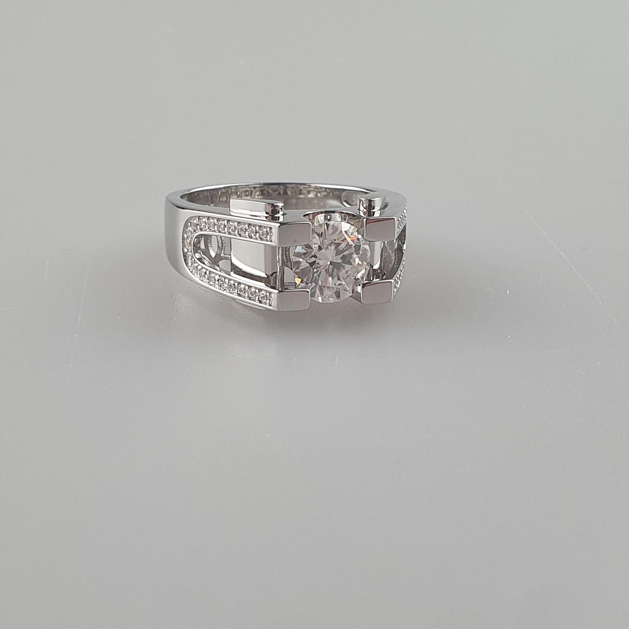 Moissanite men's ring - Sterling silver 925/000, stamped "S925", (Lab Grown Diamond), moissanite of approx. 2.00 cents. (carat number engraved inside), clarity: VVS1, colour: D, excellent cut, GRA & Gales moissanite with certificate (no. 08011354), approx. 9.1 g, ring size 20.0 m.