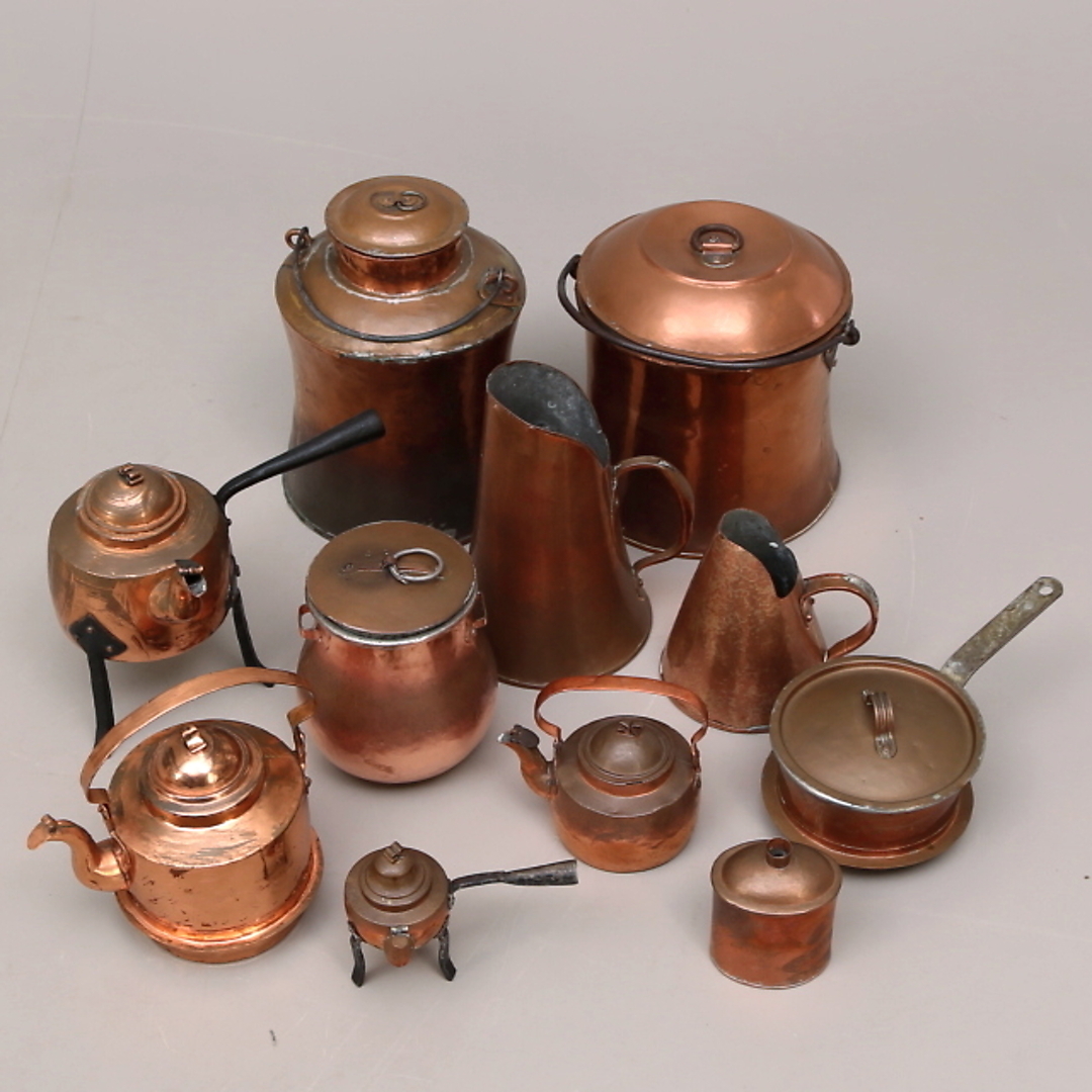 271059. COPPER ITEMS, 11 pcs, 1800s / 1900s.