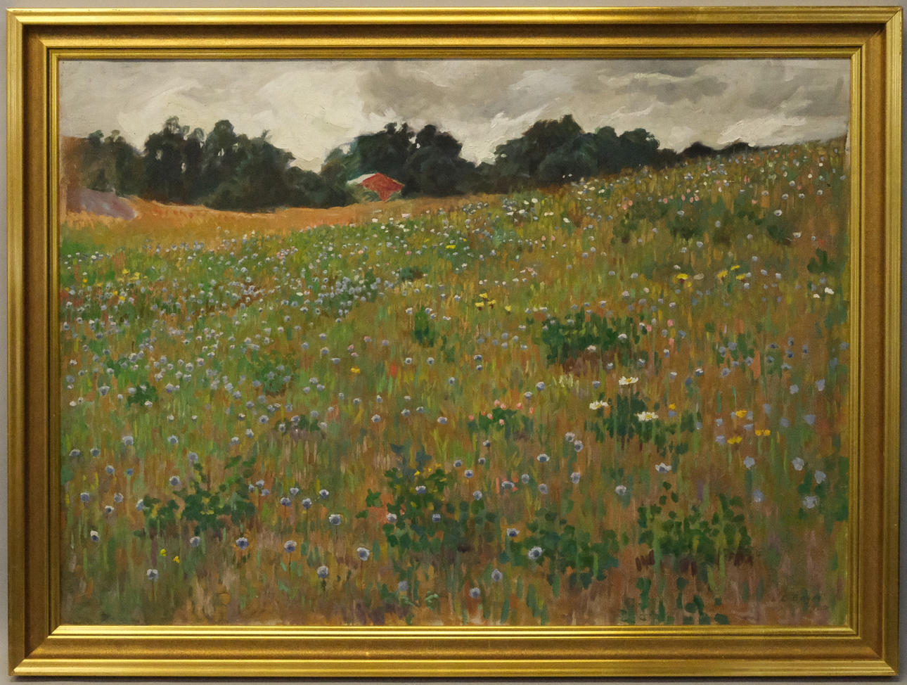 EINAR BAGER. OIL ON CANVAS, SUMMER LANDSCAPE.