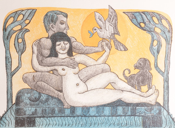 Made exclusively for the Galería de Arte Contemporáneo, published by Ediciones Polígrafa, by numbered lithographic reproduction from series A to AY of 1,000 copies, each on Art paper from the Guarro house. Numbered S596/1000, signed on the plate. Certificate on the back.