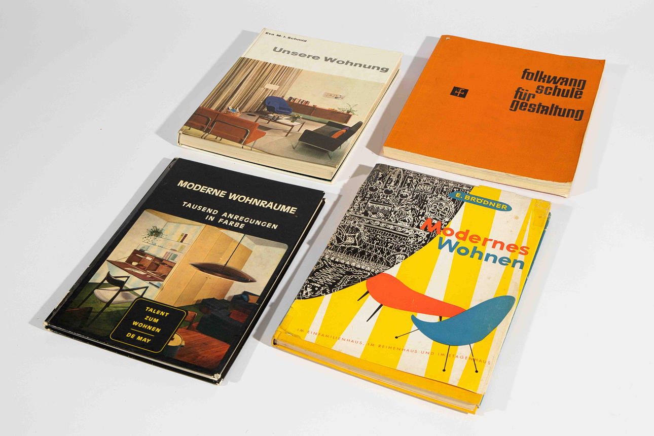 "Our apartment" - Eva MJSchmid. "Folkwang School of Design". "Modern living spaces" - de May."Modern living" - E.Brödner. "Unknown Crafting Good" - Dexel."Interbau Berlin 1957". "How to Live Volume 1 Household Items"."Housing Guide". "Equipment Art in the House of God". "How to live in 1950", "New furniture from Art Nouveau to today" - Adolf Schneck."The style of our time" - Franz Schuster. "The Art and the Beautiful Home, January 1950". Of good household goods". "The Form 1922, Issue 3". "The Book of Living" - Albert Sigrist. "Like living" - Ludwig Neundorfer. "We live between walls" - Rasch. How to Live Volume 2, Furniture". "Type writing class, Hans Nienheysen activity report 1959" - Folkwang School of Design. "Scene and word, on the work of Eugene Ionesco" - Folkwang School of Design., "Future from America" - Bauhaus Dessau Foundation. "Folkwang School of Design 1958"."Attempt to classify photography 1958" - Folkwang School of Design. "Language as an element of the printout in the poster 1961" - Folkwang School of Design. 2x "On the essence of advertising 1960" - Folkwang School of Design. "Style then and now 1964" - Folkwang School of Design."The Showcase May 1950". "The apartment for me" - Alexander Koch.