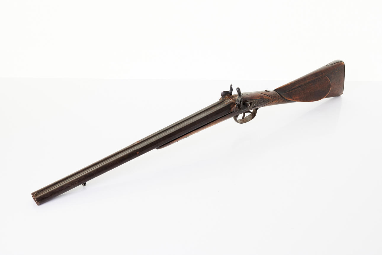 Reverse locks, half stock with net cuts and cheek rest, steel fittings. Length approx. 90 cm.