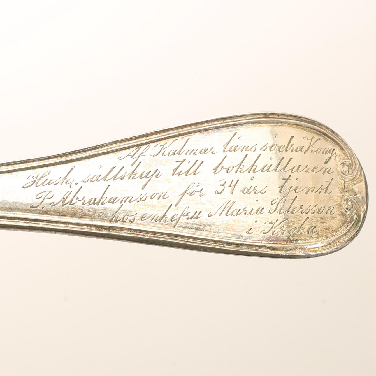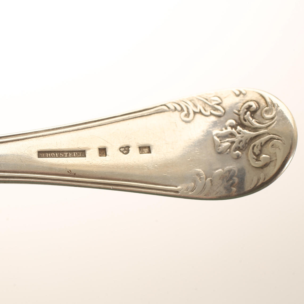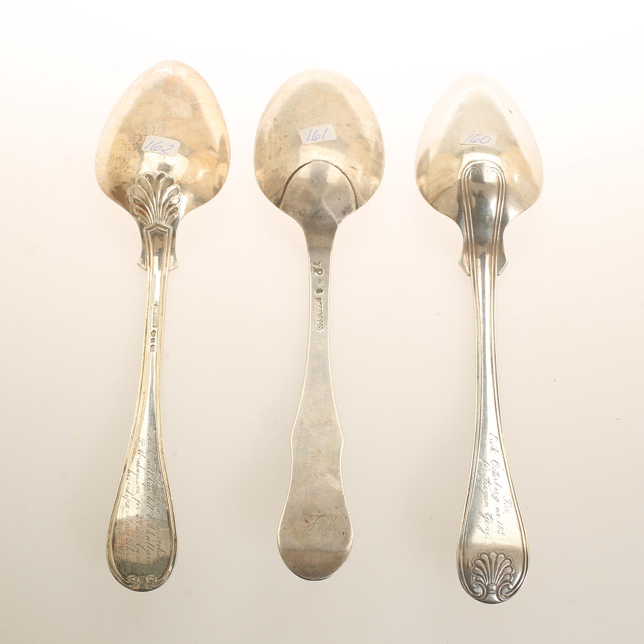Length approx. 22 cm. Weight approx. 179 gr. Spoon, Olof Hofstedt, Örebro 1855. Spoon, Erik Ericson, Uppsala 1805. Spoon, Axel Rosin, Kalmar 1890.