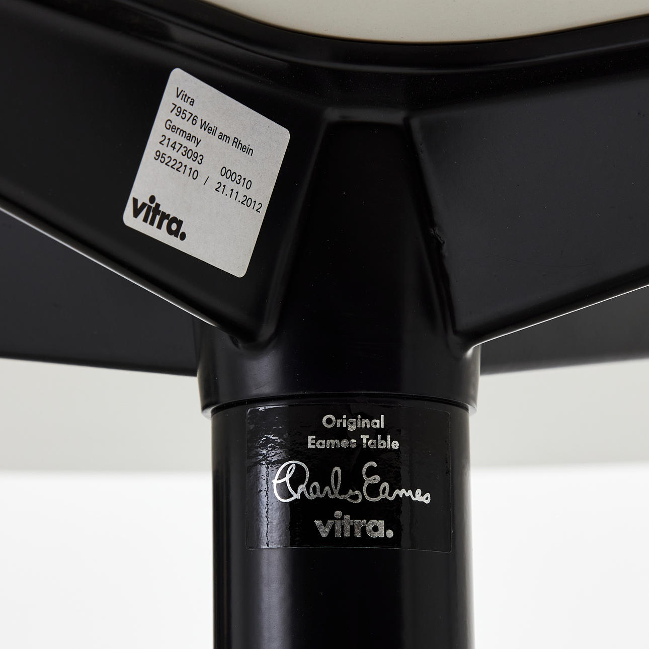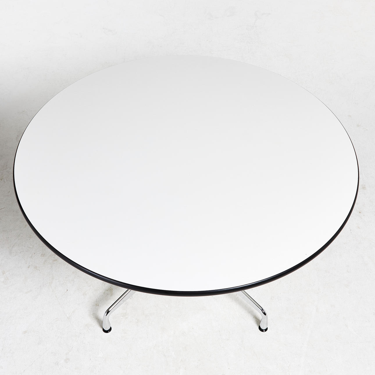 2722807. RAY & CHARLES EAMES. Table, "Segmented Round Dining Table", Vitra, round white laminate top, four-part chrome base, contemporary.