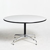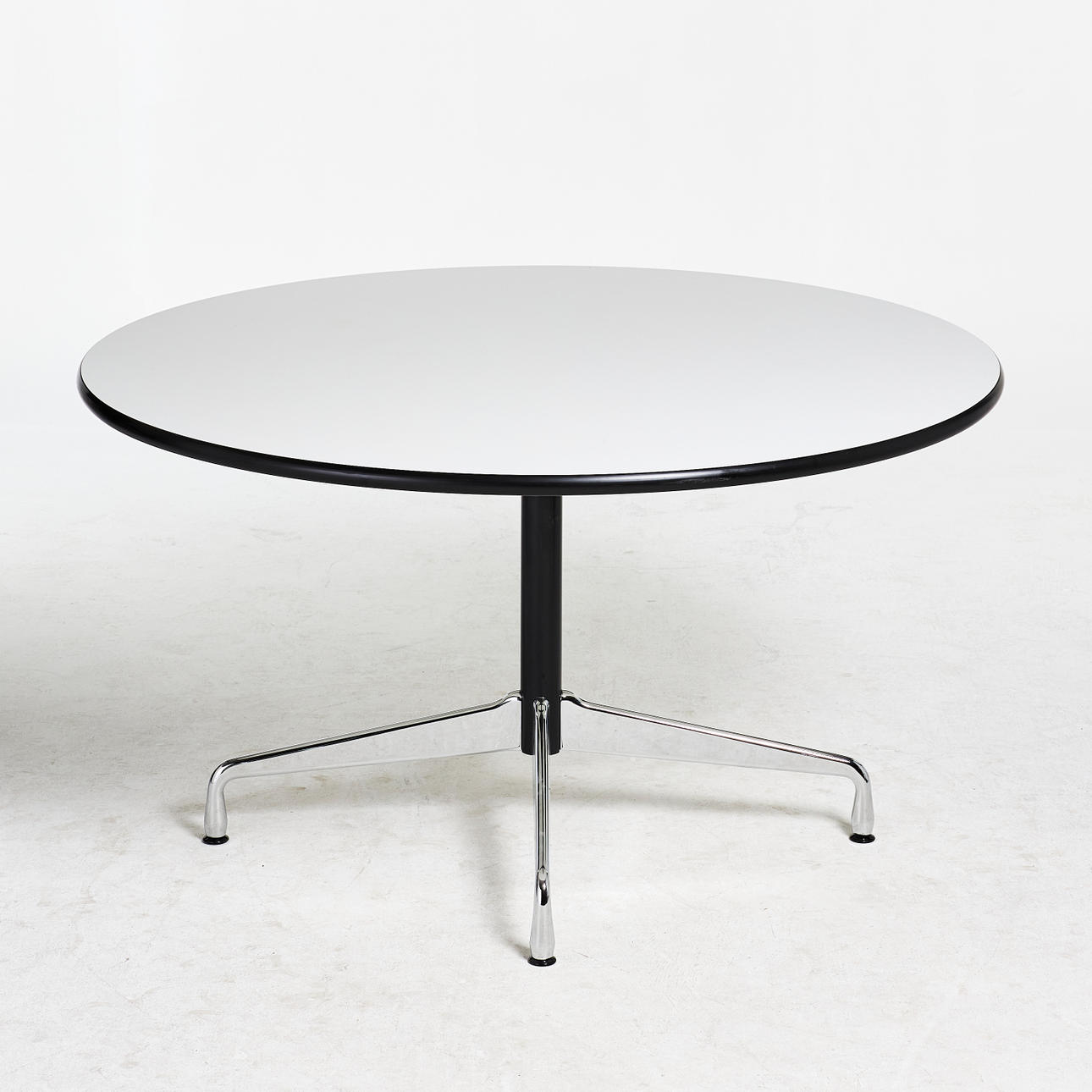 RAY & CHARLES EAMES. Table, "Segmented Round Dining Table", Vitra, round white laminate top, four-part chrome base, contemporary.