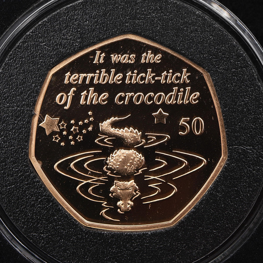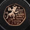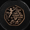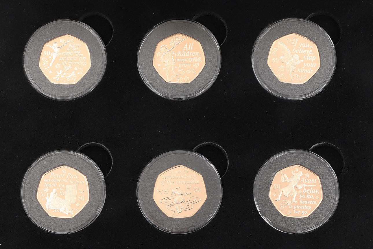 Six 50p coins each in 22 carat gold and weighing 15.5g each (93g total weight.)