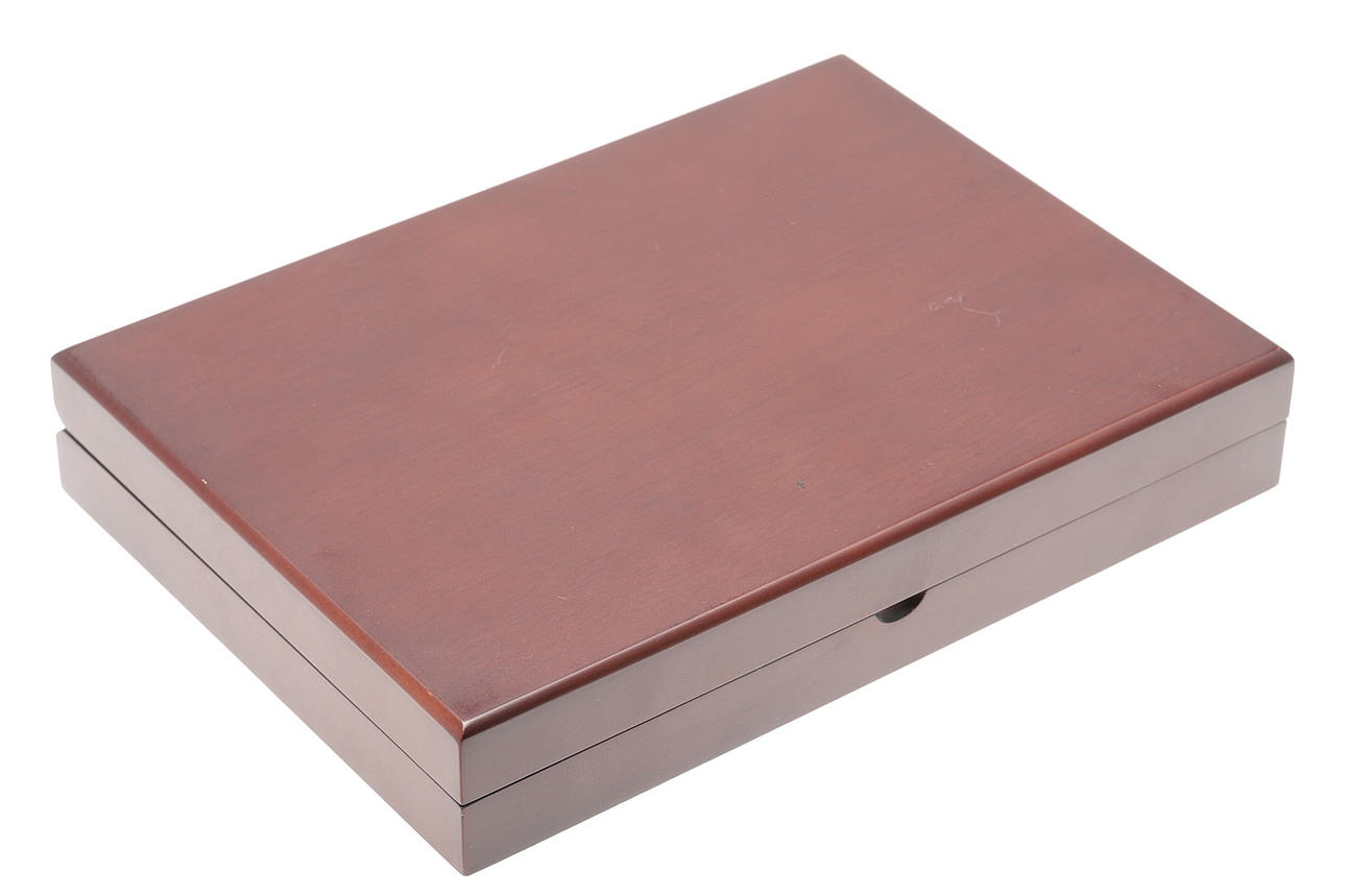 In presentation box with certificate and book.