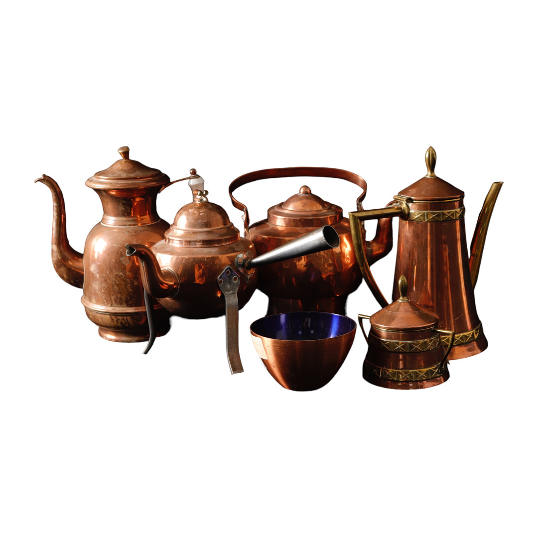 2727928. COPPER OBJECTS, 6 parts, 1900s.