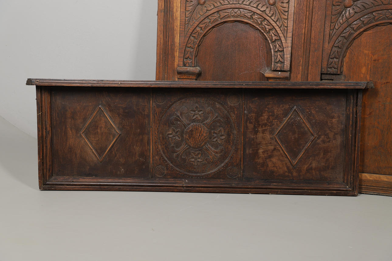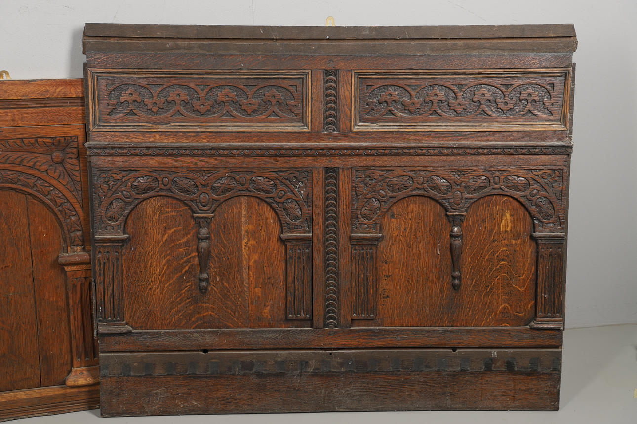 2728560. THREE CARVED OAK WALL PANELS.