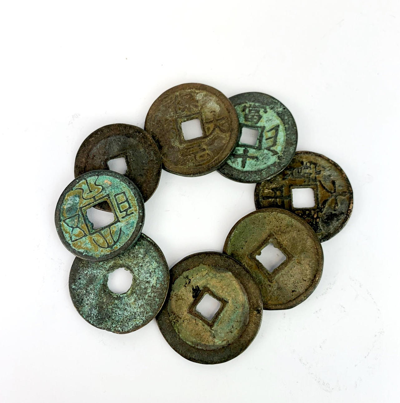 A group of mixed Chinese bronze coins.